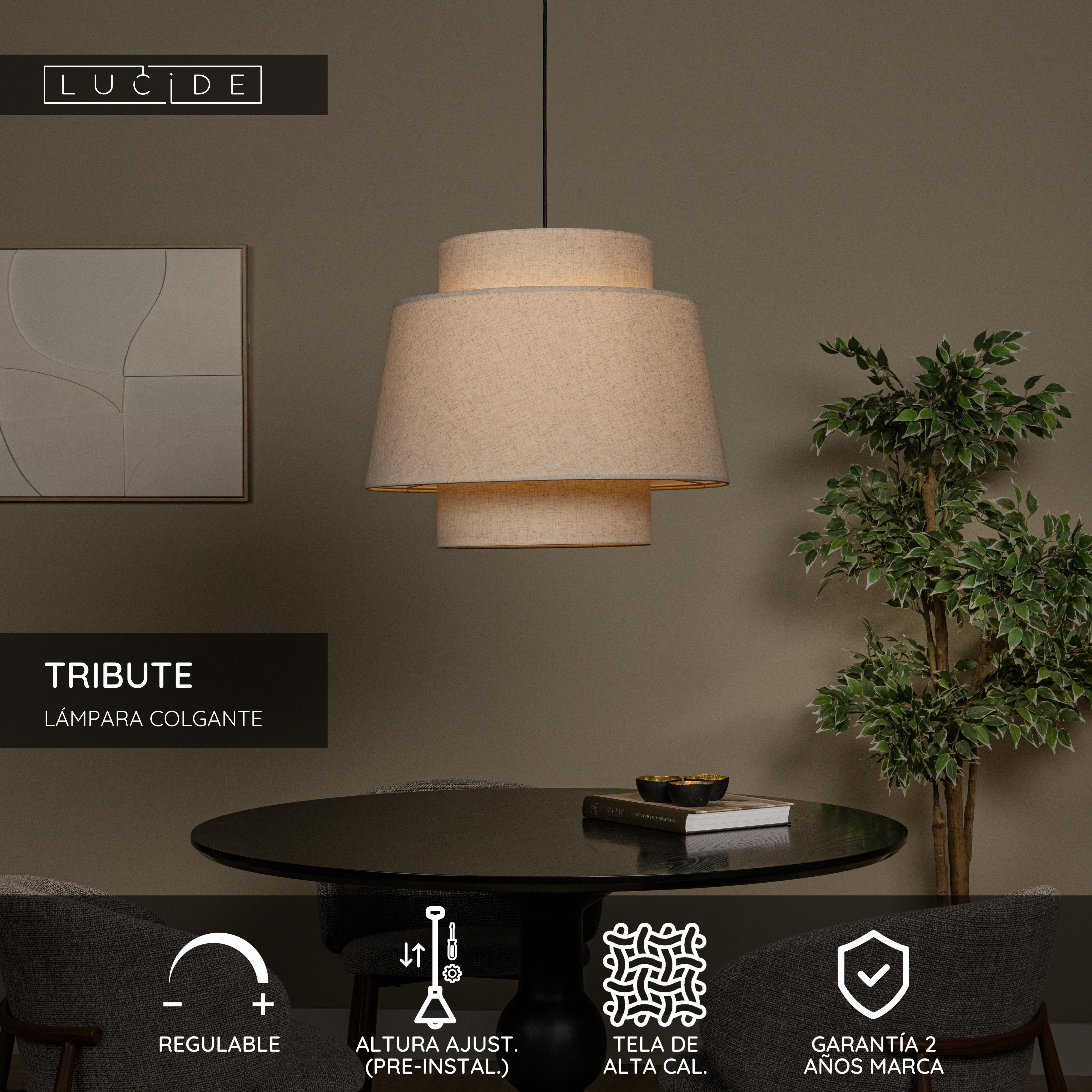 Lucide TRIBUTE - Lámpara colgante - Ø 60 cm - 1xE27 - Beige