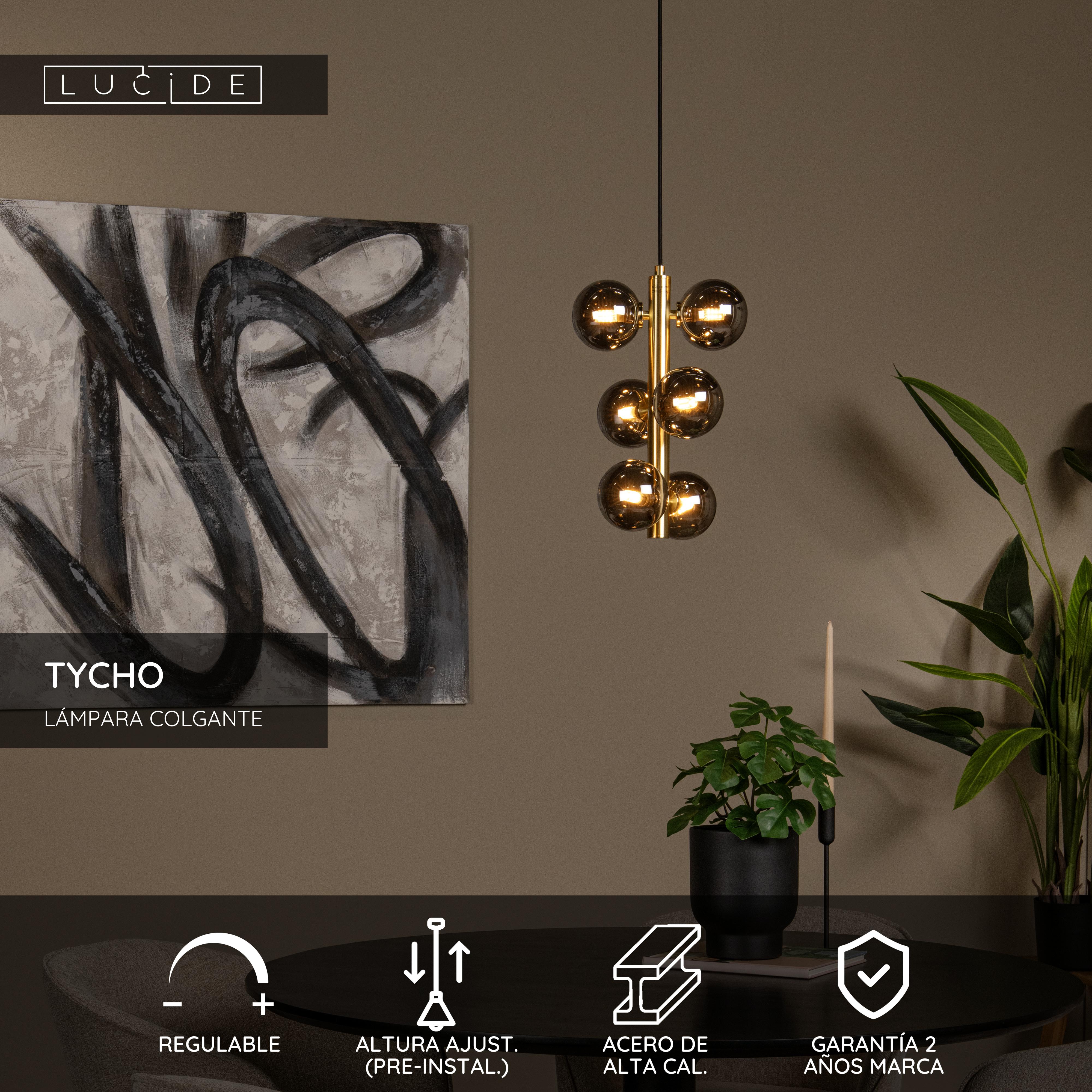 Lucide TYCHO - Lámpara colgante - Ø 25,5 cm - 6xG9 - Oro mate / Latón