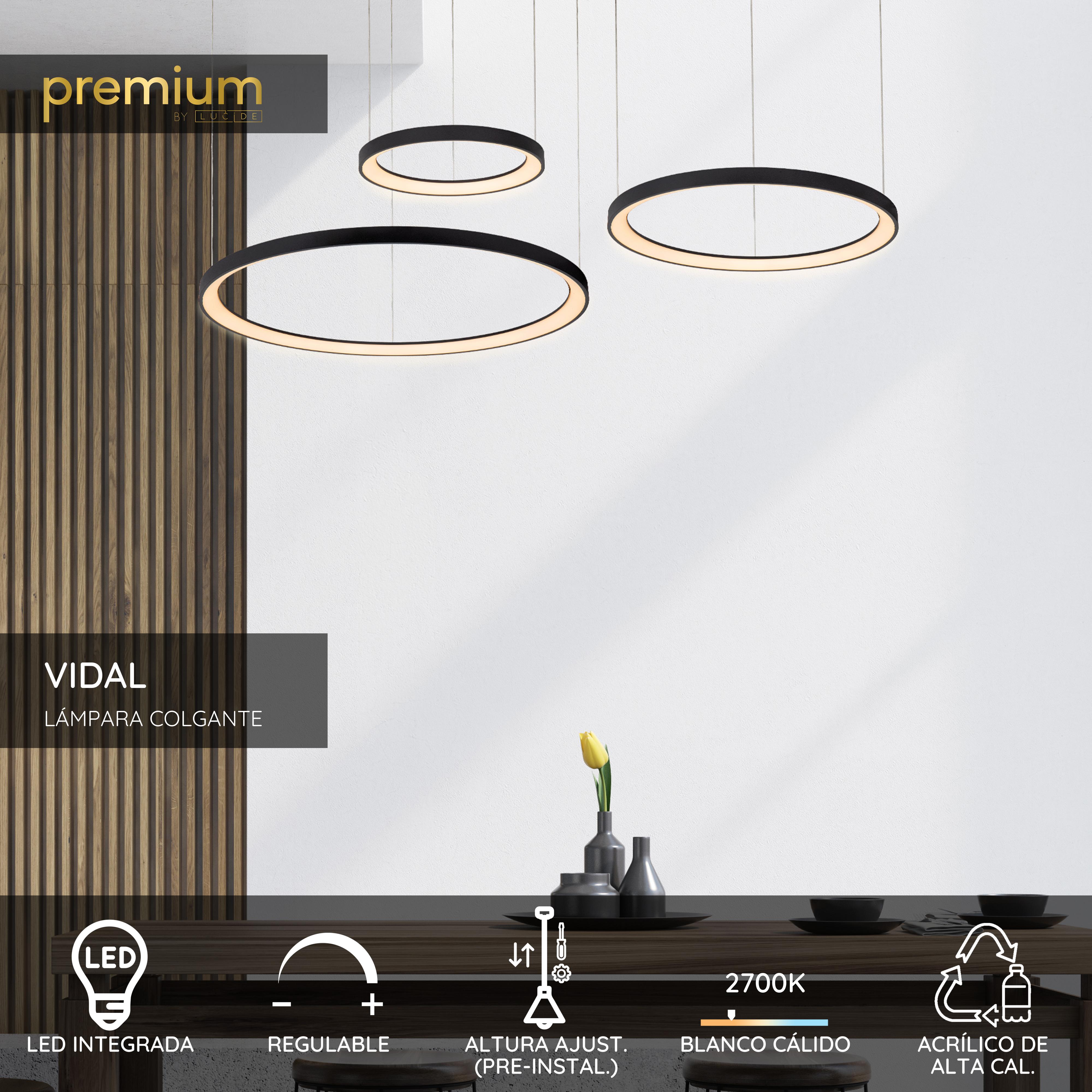 Lucide VIDAL - Lámpara colgante - Ø 78 cm - LED Regul. - 1x120W 2700K - Negro | Premium