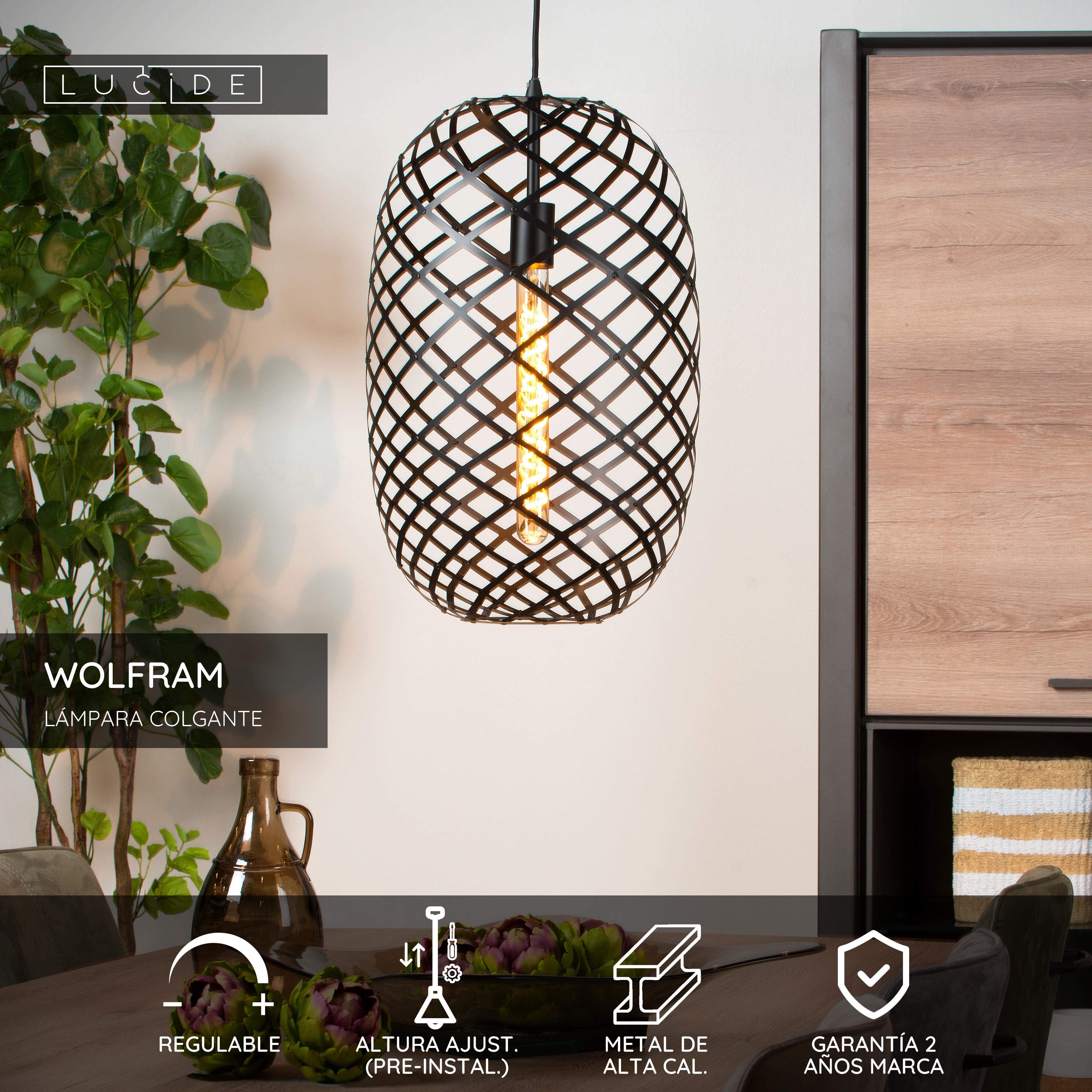 Lucide WOLFRAM - Lámpara colgante - Ø 32 cm - 1xE27 - Negro