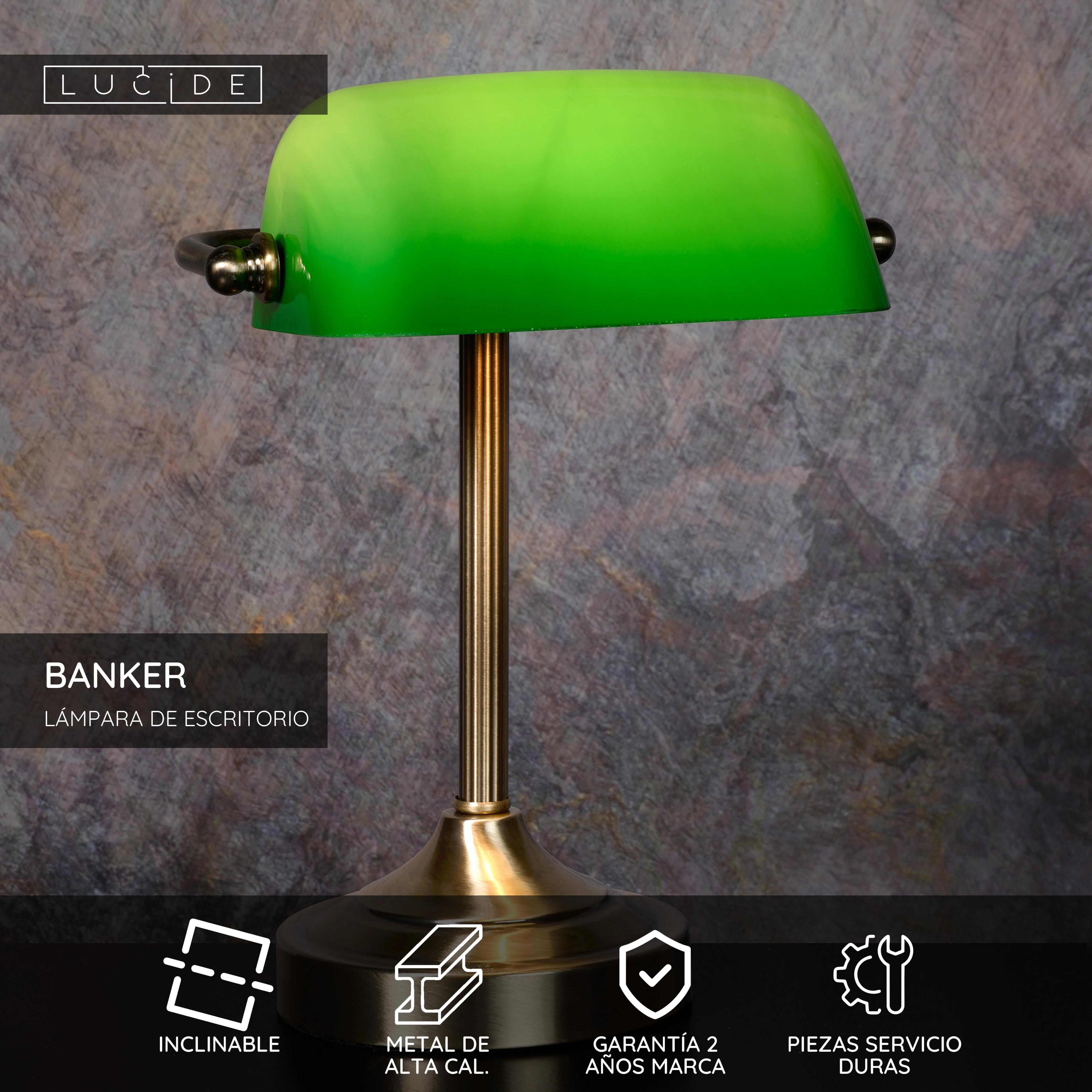 BANKER es la versión de Lucide de la conocida lámpara de banca o notaría en versión mini. Es una luminaria de escritorio atemporal que encaja tanto en interiores de estilo clásico como moderno. Resulta atractiva allí donde la pongas y te será muy funcional sobre un escritorio o un clásico mueble secrétaire.