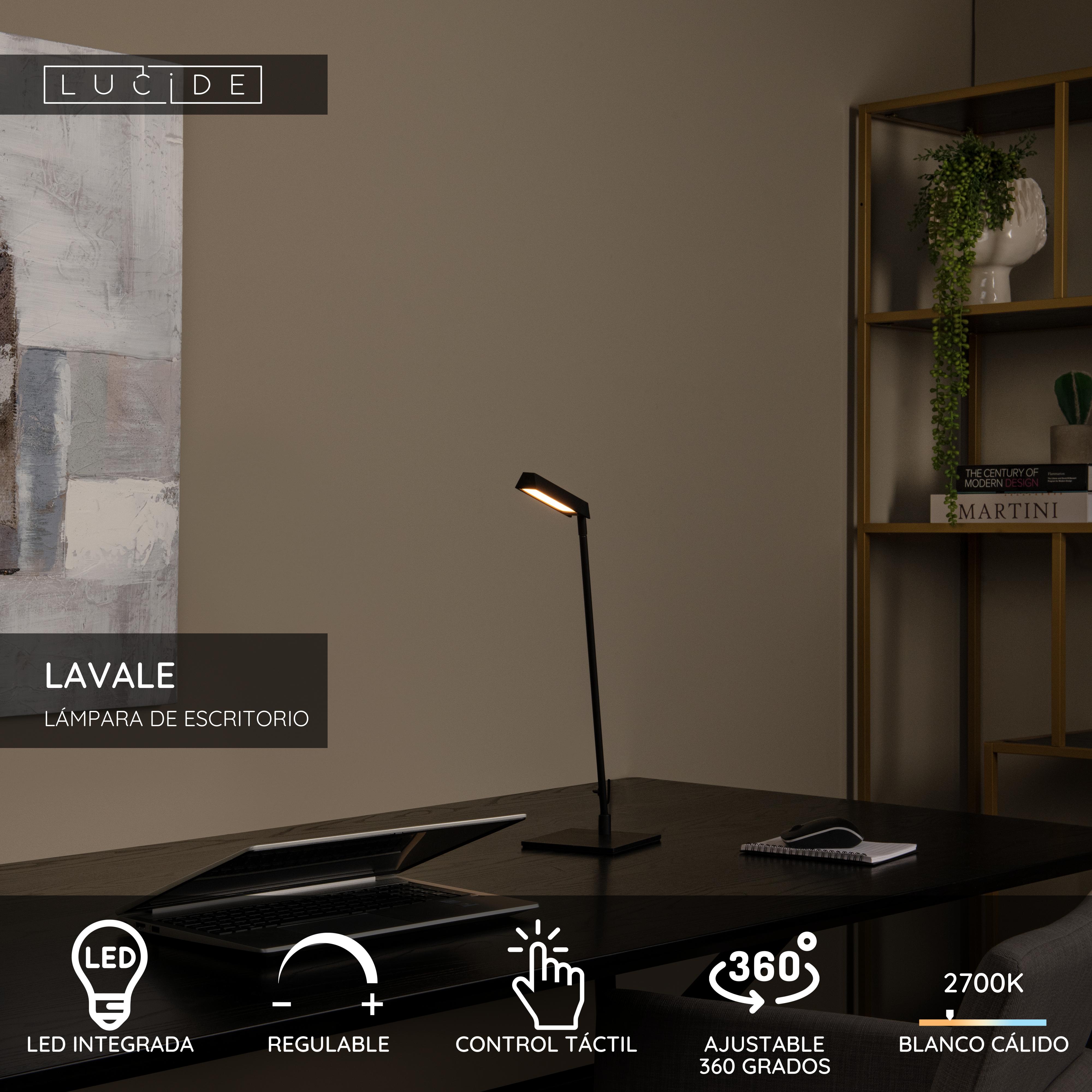 Lucide LAVALE - Lámpara de escritorio - LED Regul. - 1x3W 2700K - Negro
