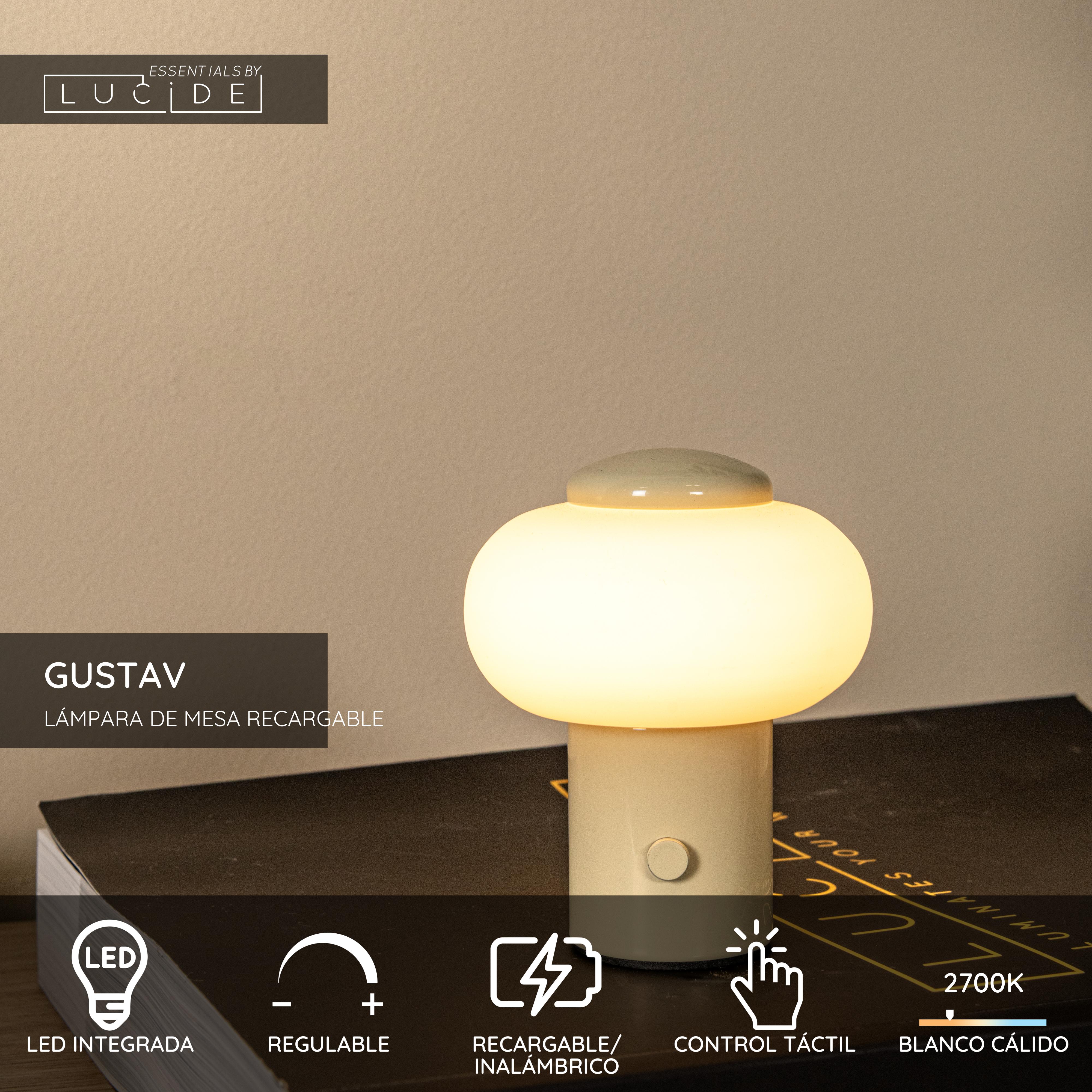 Lucide GUSTAV - Lámpara de mesa Recargable - Batería/acumulador - Ø 8 cm - LED Regul. - 1x0,8W 2700K - Beige | Essential