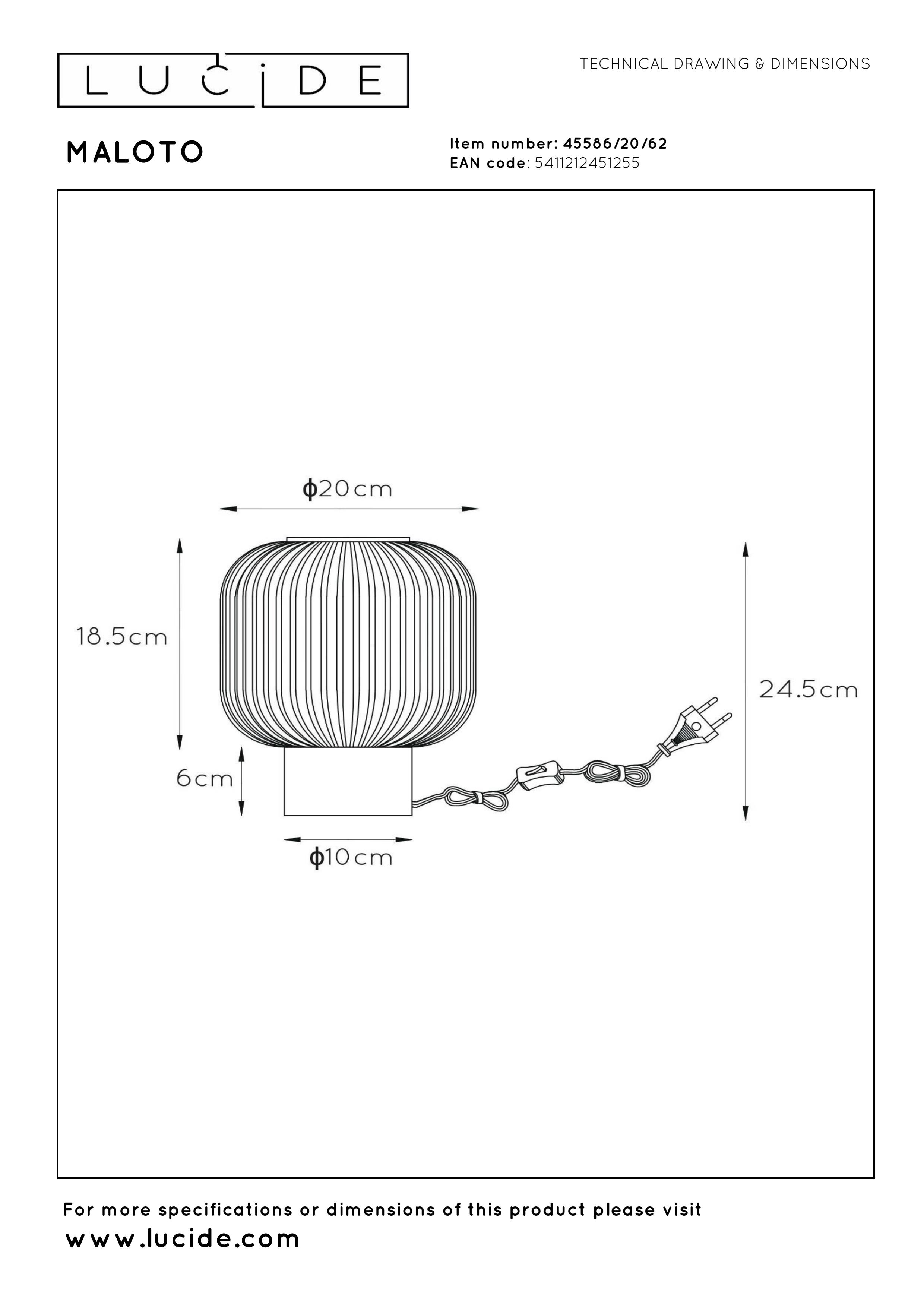 Lucide MALOTO - Lámpara de mesa - Ø 20 cm - 1xE27 - Ámbar