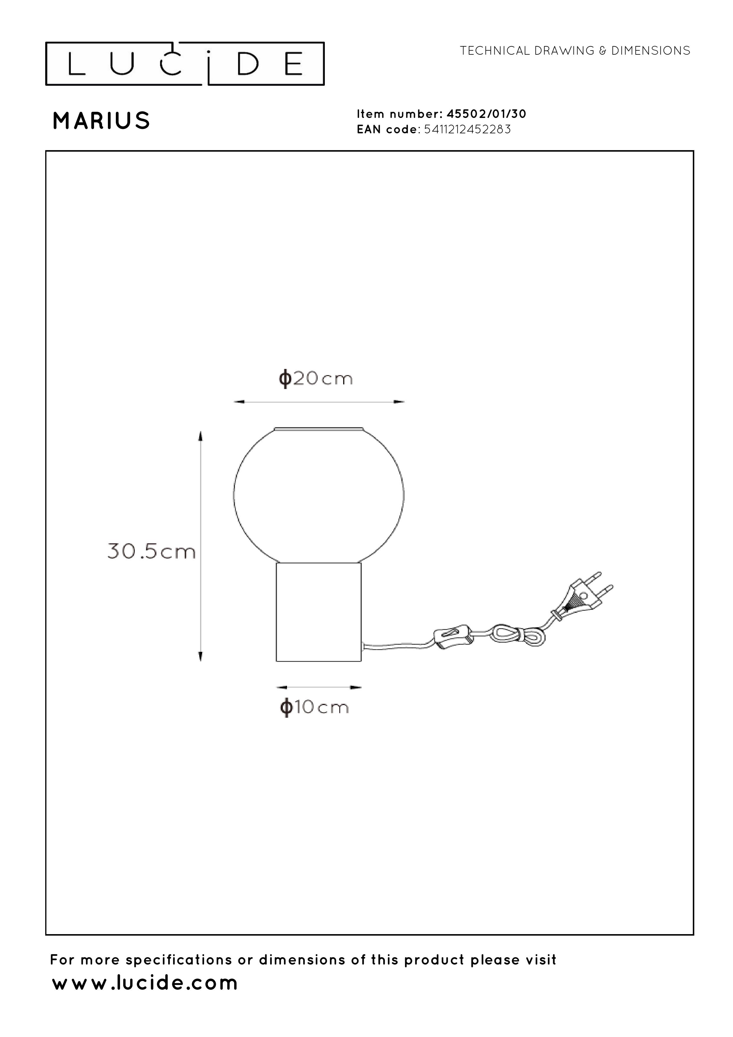 Lucide MARIUS - Lámpara de mesa - Ø 20 cm - 1xE27 - Negro