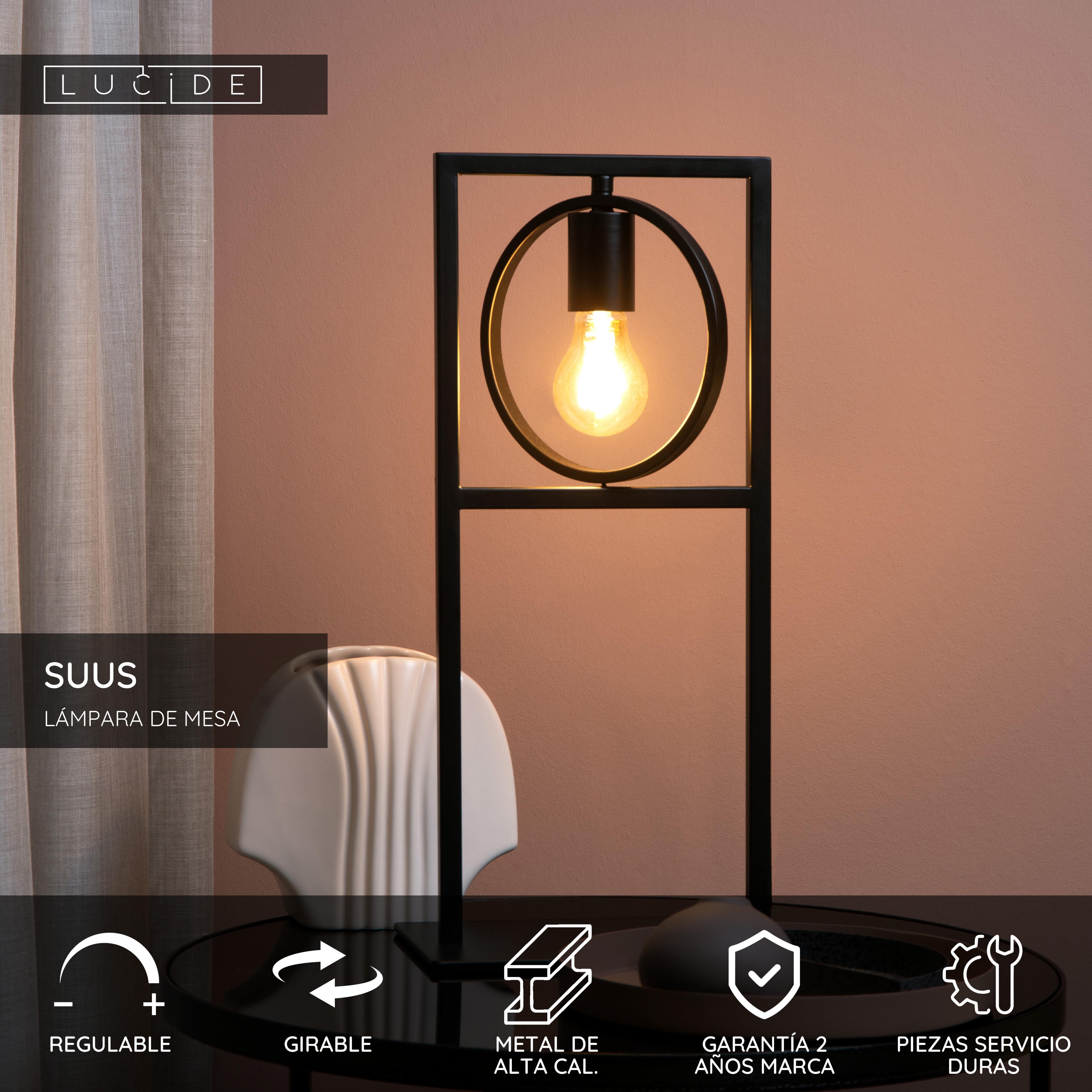 Lucide SUUS - Lámpara de mesa - 1xE27 - Negro