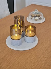 No hay nada como un par de velas en la mesa para crear un ambiente acogedor, ¿verdad? Velas le ofrece el aspecto y la sensación de las velas de verdad, pero sin las llamas. Ya no tendrá que buscar cerillas, preguntarse si ha apagado las velas o preocuparse por los dedos quemados. Estas encantadoras luces están siempre listas para crear un ambiente cálido. El diseño de cristal añade un toque de estilo a Velas. Con este juego de tres lámparas de mesa, cualquier reunión será un éxito garantizado. Este producto funciona con 3 pilas AAA (no incluidas).
