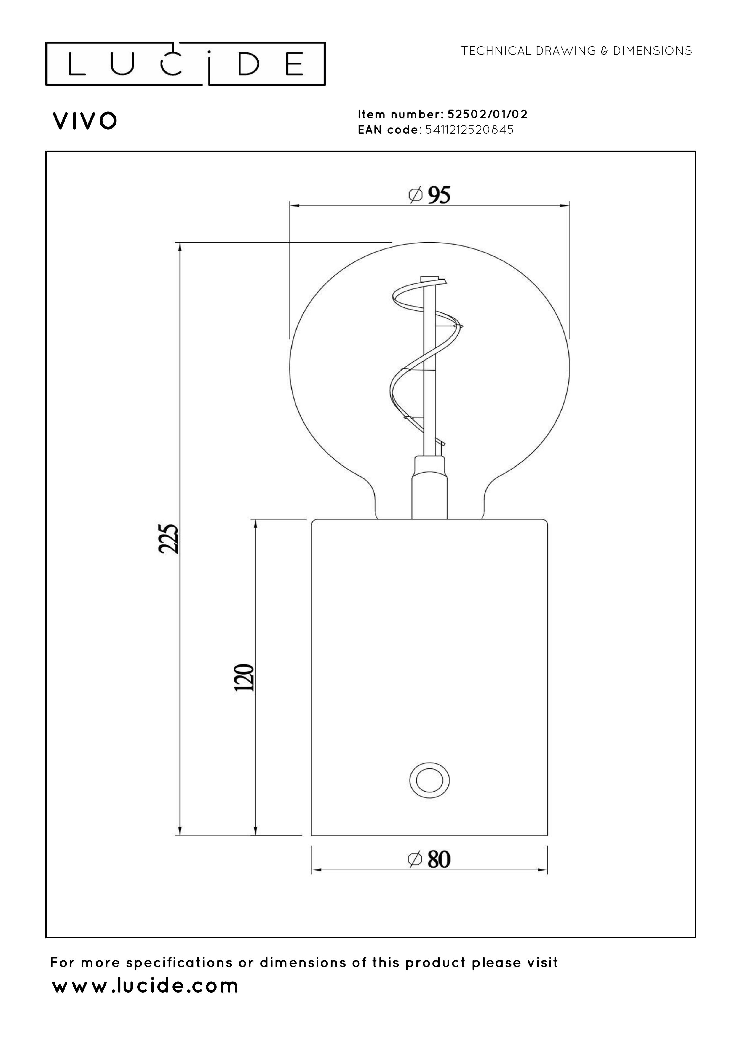 La lámpara de mesa Lucide VIVO ofrece una iluminación elegante y funcional con un diseño moderno. Con un diámetro de 8 cm y una altura de 22,5 cm, esta lámpara compacta encaja perfectamente en cualquier espacio. le da un toque de lujo y elegancia. Gracias a su batería integrada, puedes disfrutar de hasta 6 horas de iluminación sin cables. La lámpara cuenta con una fuente de luz LED regulable de 2700K, controlable mediante un sensor táctil. ¡Una opción ideal para combinar ambiente y funcionalidad!