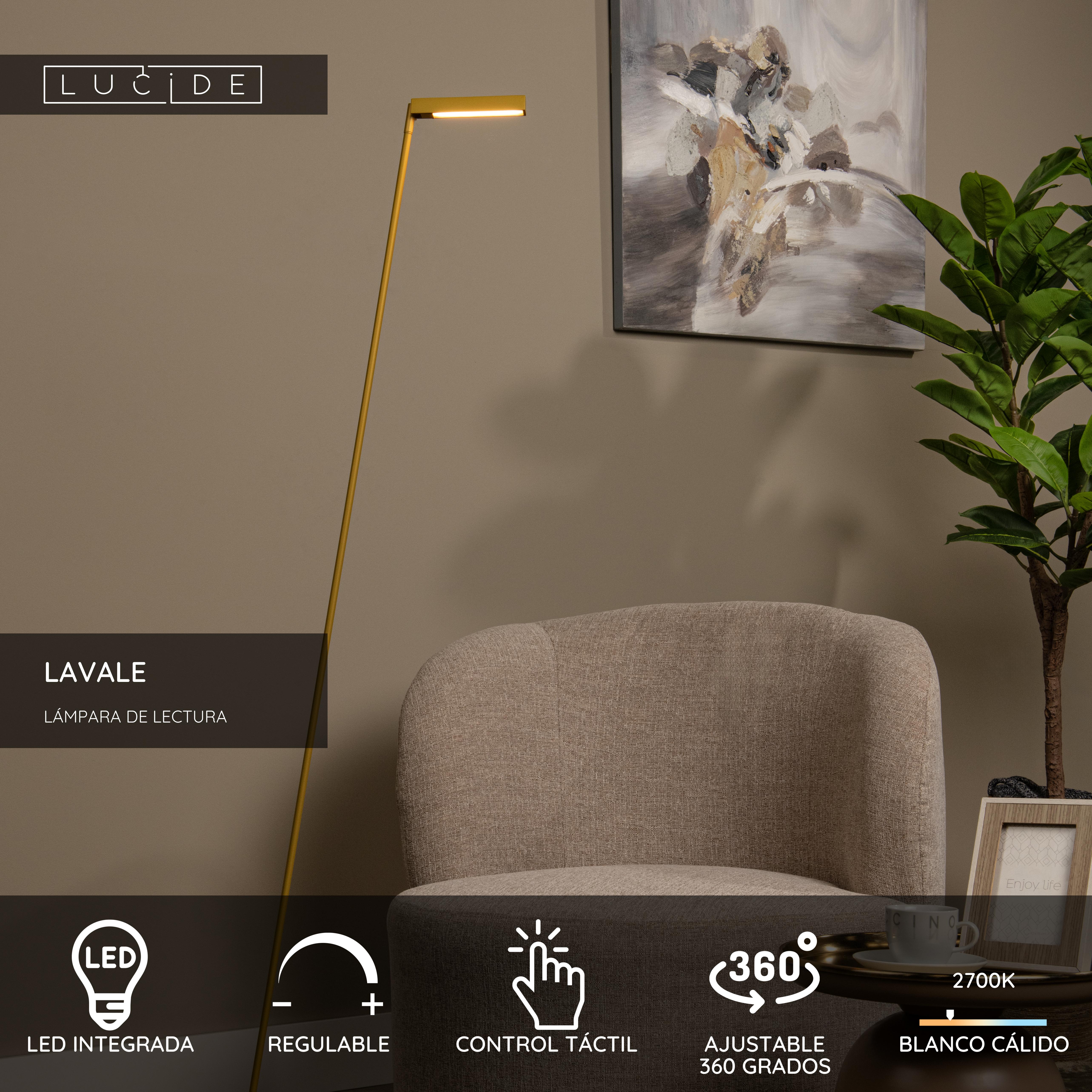 ¿Necesitas un toque de luz? Llévate el modelo Lavale a tu hogar. Su elegante diseño es casi inigualable. Literalmente, porque esta lámpara de lectura de alta calidad en metal tiene una forma muy estrecha y discreta. La lámpara de pie es giratoria horizontalmente 360° y también se puede inclinar verticalmente. Eso te permitirá eliminar las sombras no deseadas. Además, el modelo Lavale está equipado con luz cálida adicional que puedes ajustar fácilmente a la intensidad deseada a través del sensor táctil en la lámpara. Esto te permitirá transformar el ambiente de pleno enfoque a un momento de relajación zen en un abrir y cerrar de ojos. Lavale, sublime y discreta.