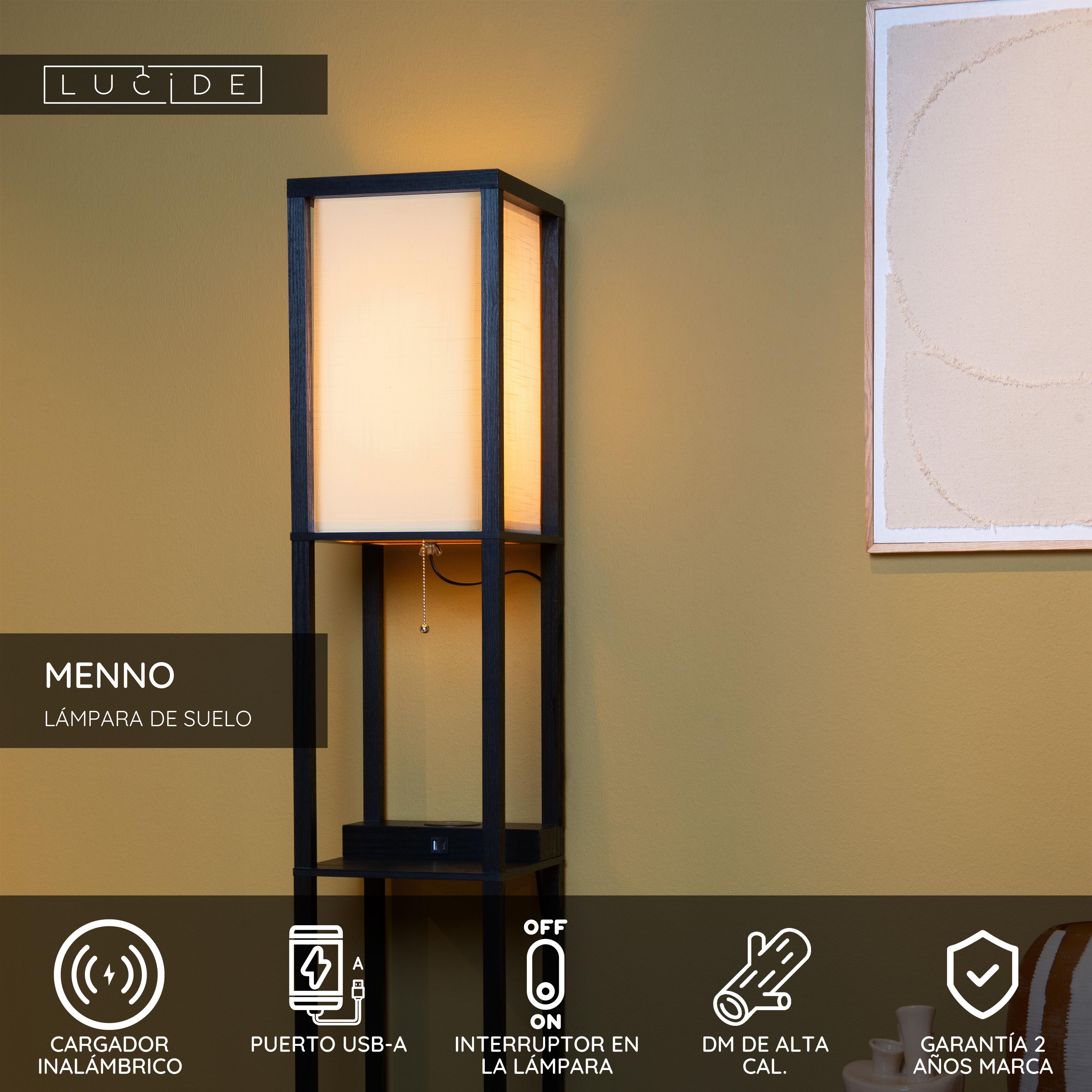 Lucide MENNO - Lámpara de suelo - 1xE27 - Con cargador inalámbrico - Negro