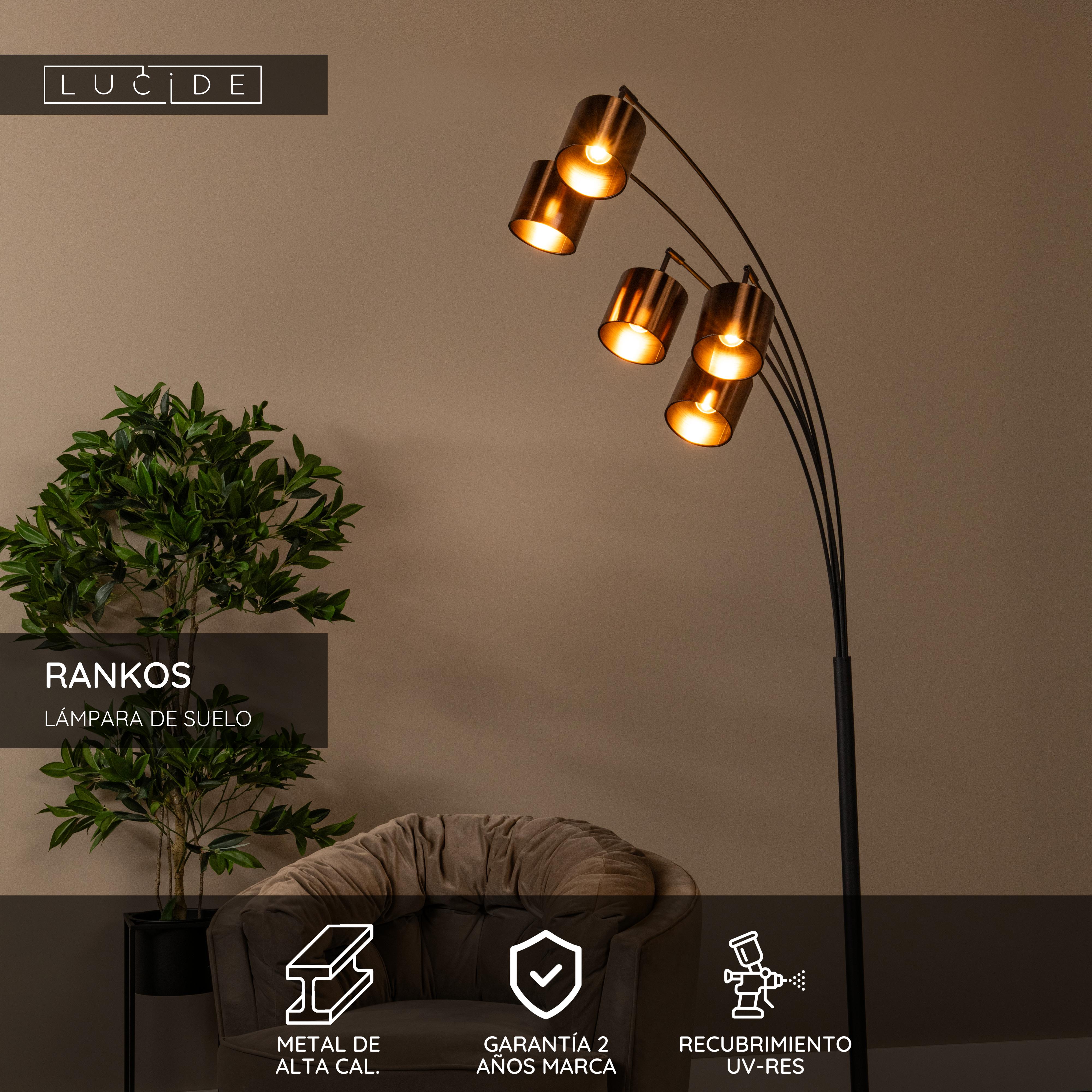 Lucide RANKOS - Lámpara de suelo - 5xE14 - Negro
