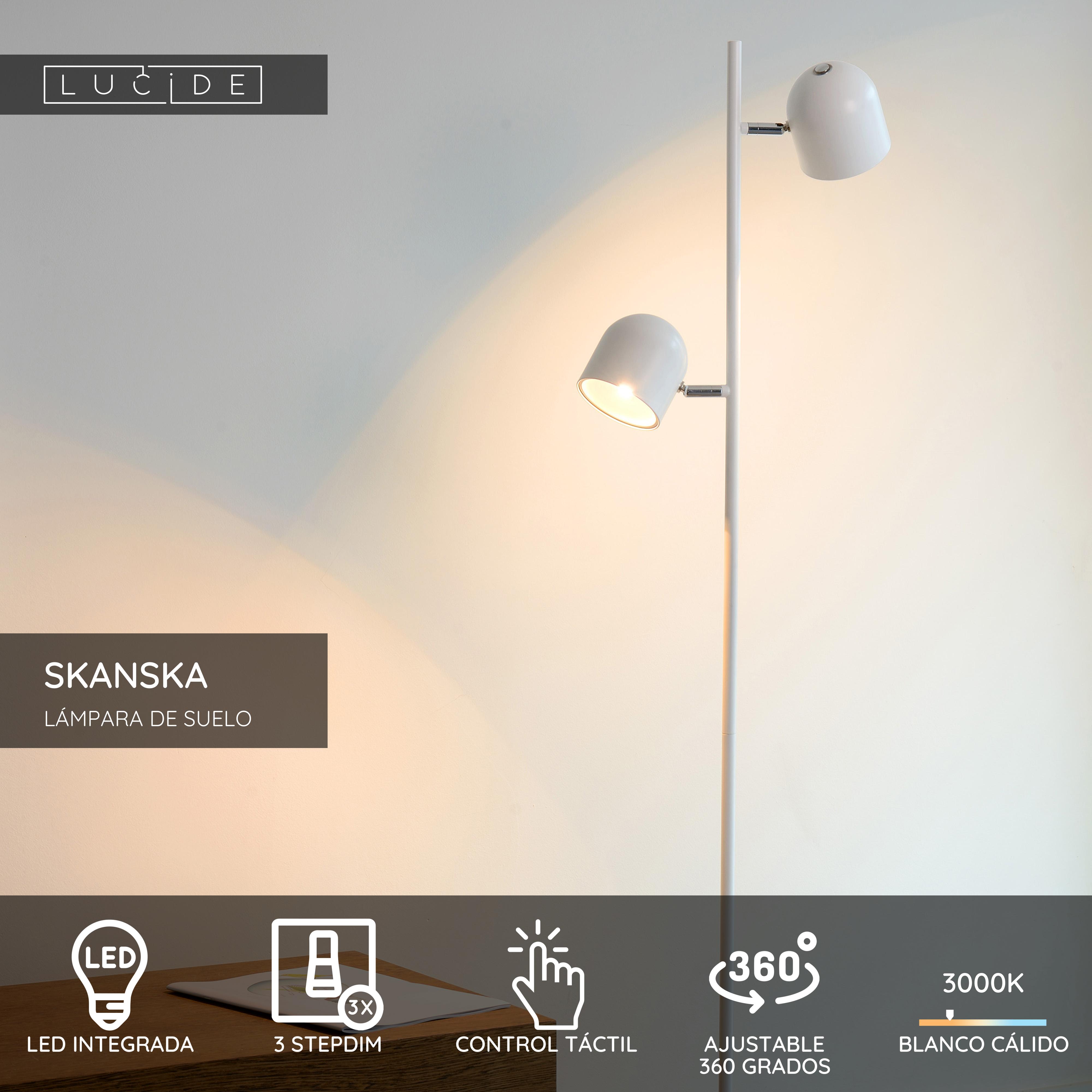 Lucide SKANSKA - Lámpara de suelo - LED 3 StepDim - 2x5W 3000K - Blanco