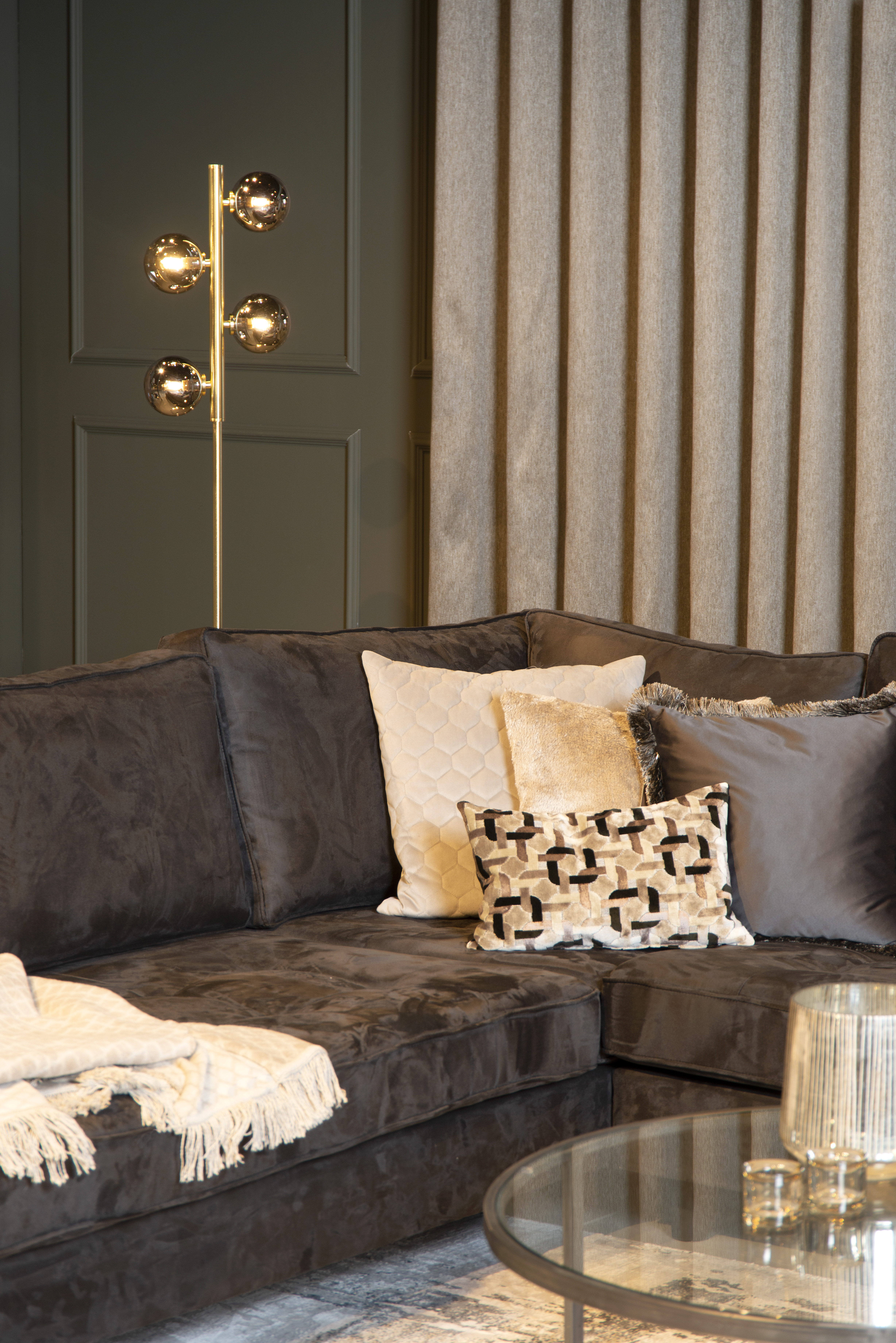 Tycho es estilosa, elegante y sorprendentemente diferente. Esta lámpara de suelo combina una base de acero delgada con refinadas esferas de cristal. El pie compacto tiene un diámetro de 25 centímetros. Gracias a esto, es muy fácil encontrarle un sitio ya sea en una esquina o entre tus muebles. Esta atractiva lámpara de pie mide más de 1,5 metros de alto. Desde sus cuatro puntos de luz, Tycho difunde un agradable resplandor a su alrededor. Es la iluminación que te aportará ese punto retro que buscas para tu salón.
