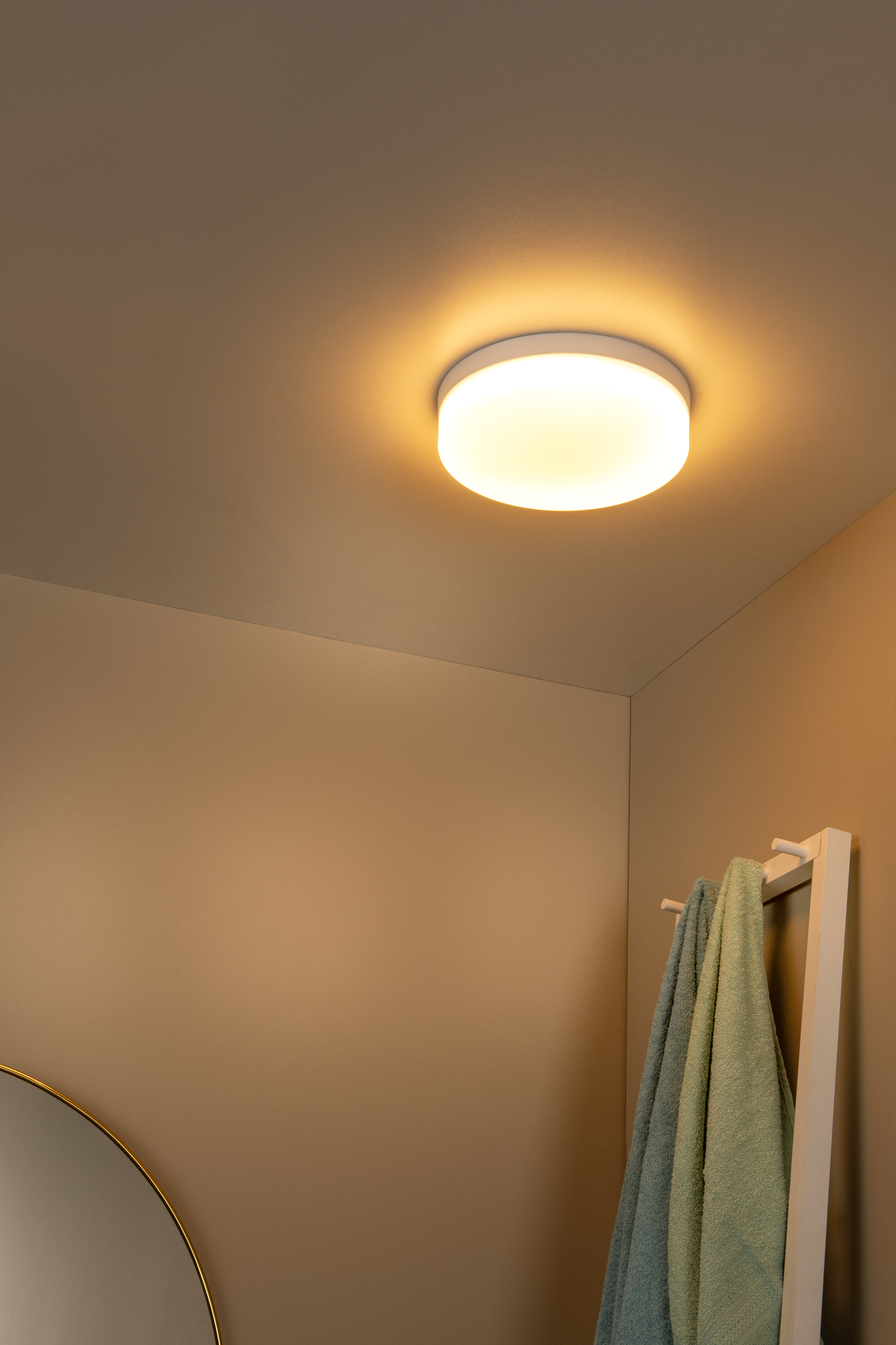 Lucide BISKIT - Lámpara de techo Baño - Ø 28 cm - LED - 1x18W 2700K - IP44 - Sensor movimiento - Blanco