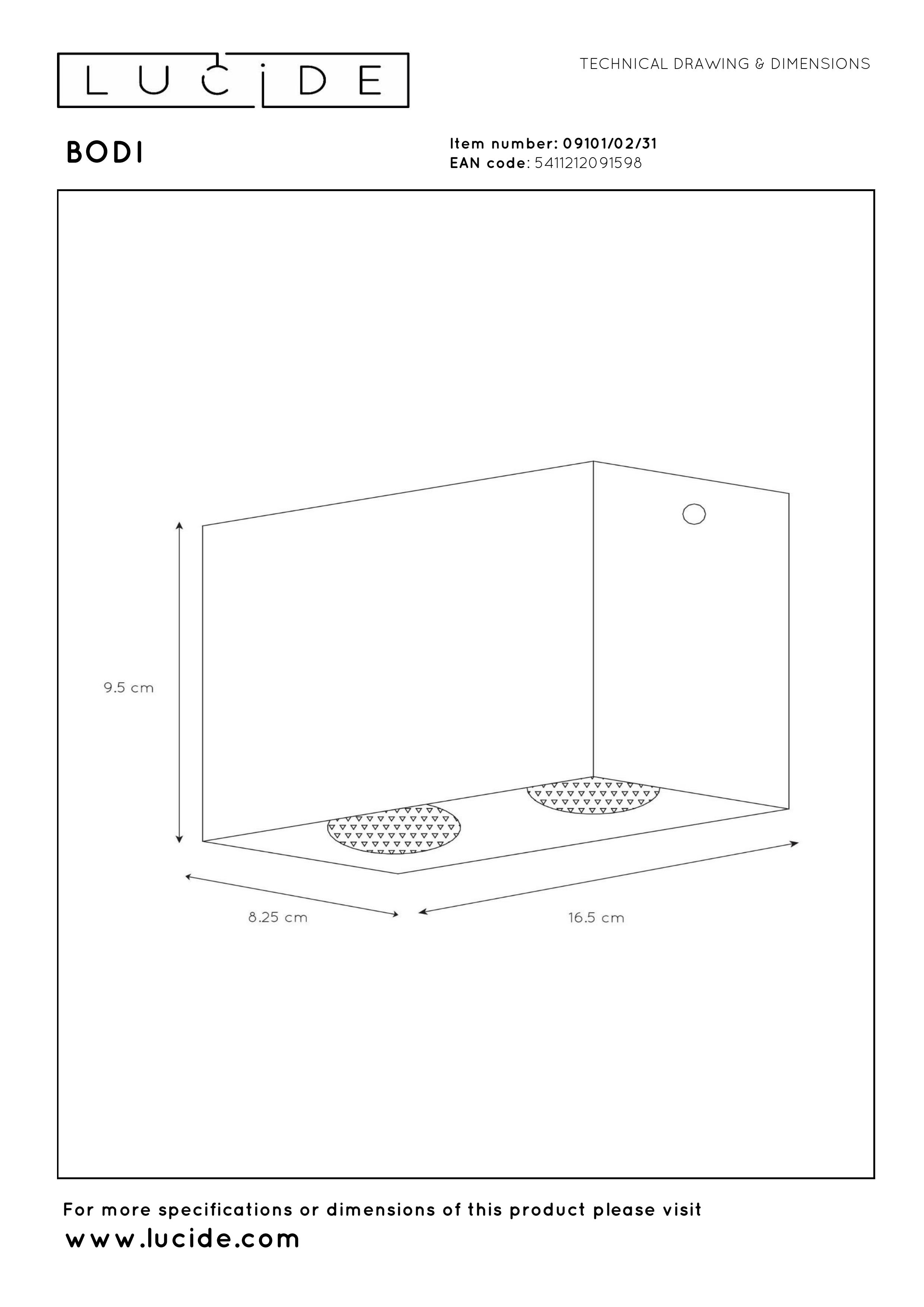 Lucide BODI - Foco de techo - 2xGU10 - Blanco