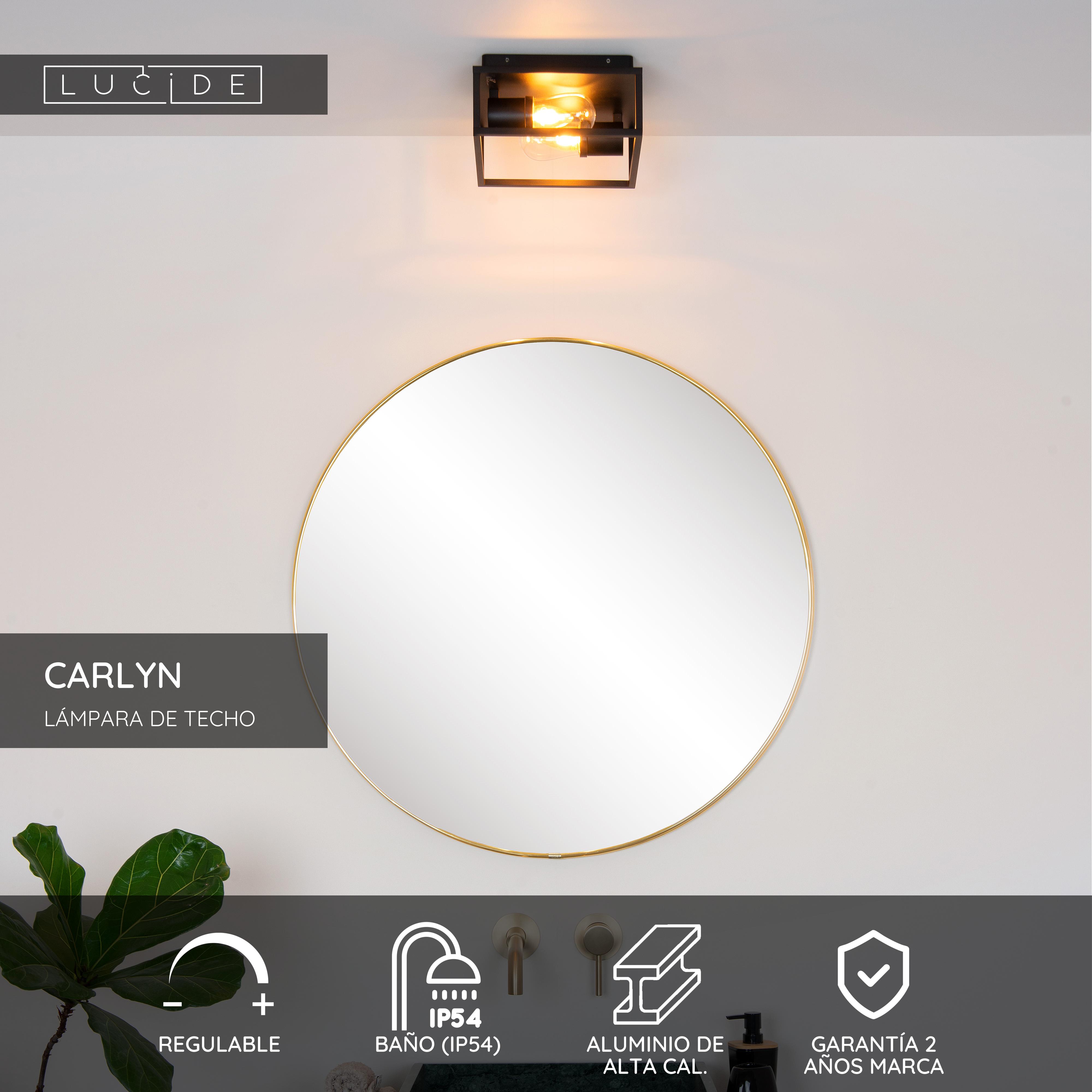Una correcta iluminación es muy importante en el cuarto de baño. Esta lámpara de techo, llamada Carlyn, ha sido especialmente diseñada para su uso seguro en el lavabo. Dispone de dos portalámparas, compatibles con bombillas LED, que producen una luz blanca extra cálida. Están colocados uno frente al otro, de manera que la luz brilla de manera hermosa en el centro. Una elegante cubierta de cristal alrededor de la lámpara protege la luminaria. Su marco de forma cuadrada está fabricado en aluminio. Es resistente y fino, de manera que la luz se propaga libremente por toda la habitación. El armazón de aluminio mide 25 x 25 centímetros. Es un modelo ideal en baños de estilo moderno, para darles un toque extra de diseño. La instalación de Carlyn en el techo es sencilla gracias a su placa de montaje. Puedes encenderla y apagarla con el interruptor.