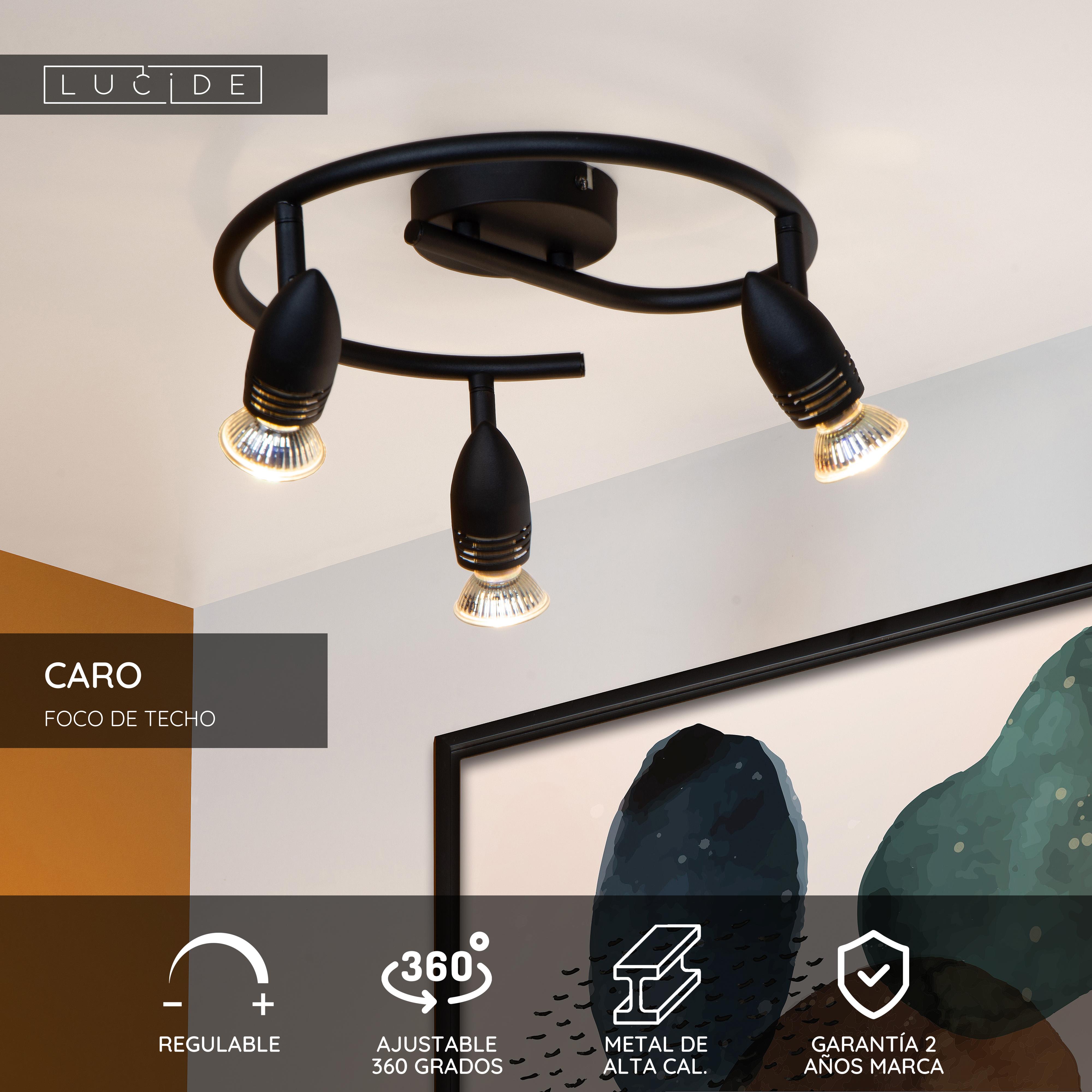 Lucide CARO - Foco de techo - Ø 31 cm - 3xGU10 - Negro