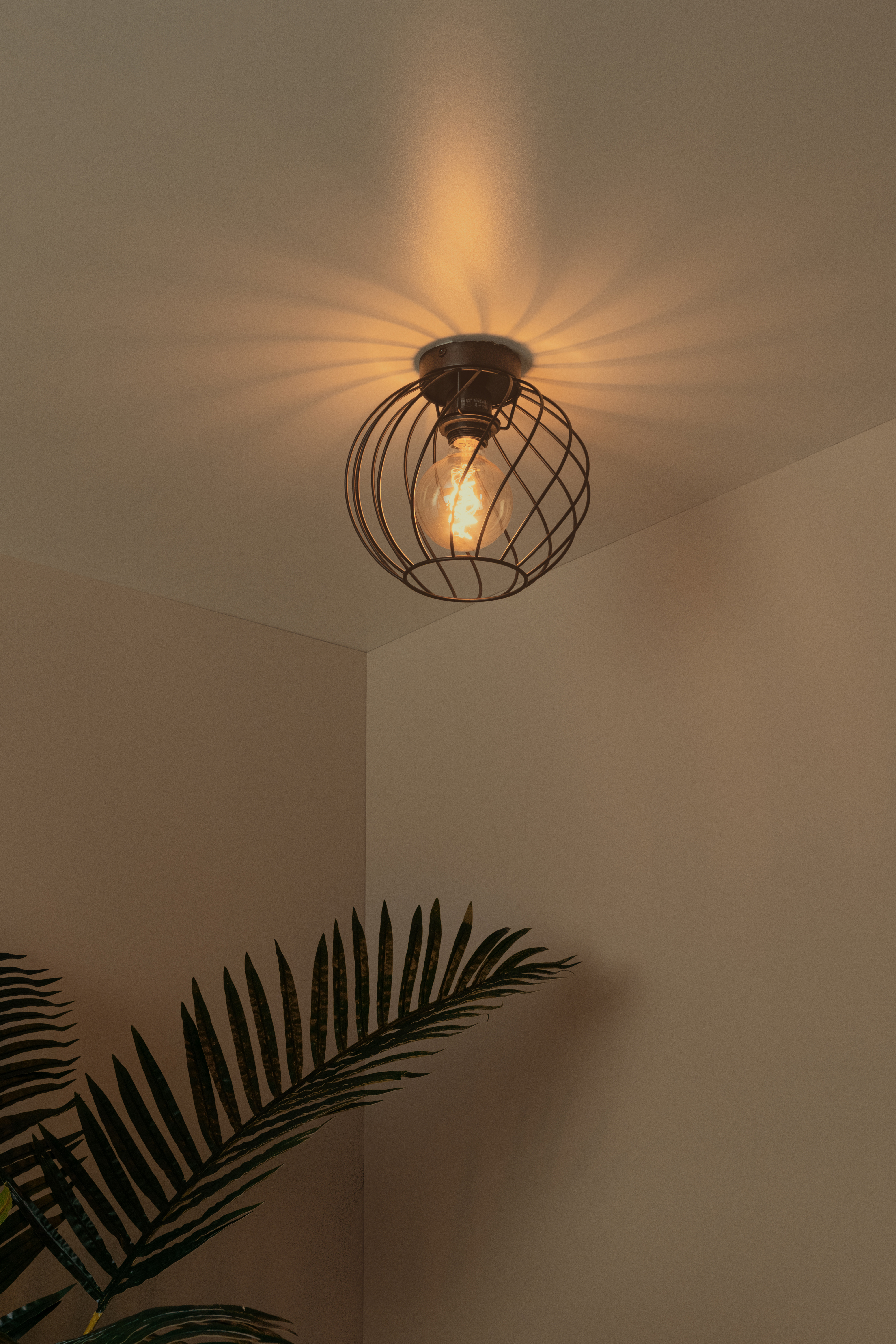 Una llamativa lámpara de techo se merece recibir la atención justa. Así que coloca la lámpara Danza bien a la vista. Sobre tu mesa de salón, en la isla de la cocina, en el recibidor o en el aseo de invitados: el modelo clásico con look retro es muy versátil. La lámpara de techo en forma de bola rodea el foco de luz con cables metálicos finos y retorcidos. Gracias a su estructura abierta, el modelo Danza combina bien con bombillas de filamento. Ajusta la intensidad de la luz con un regulador externo según el ambiente del momento. Esta lámpara de techo tiene un diámetro de 25 cm y una altura de 22,5 cm.