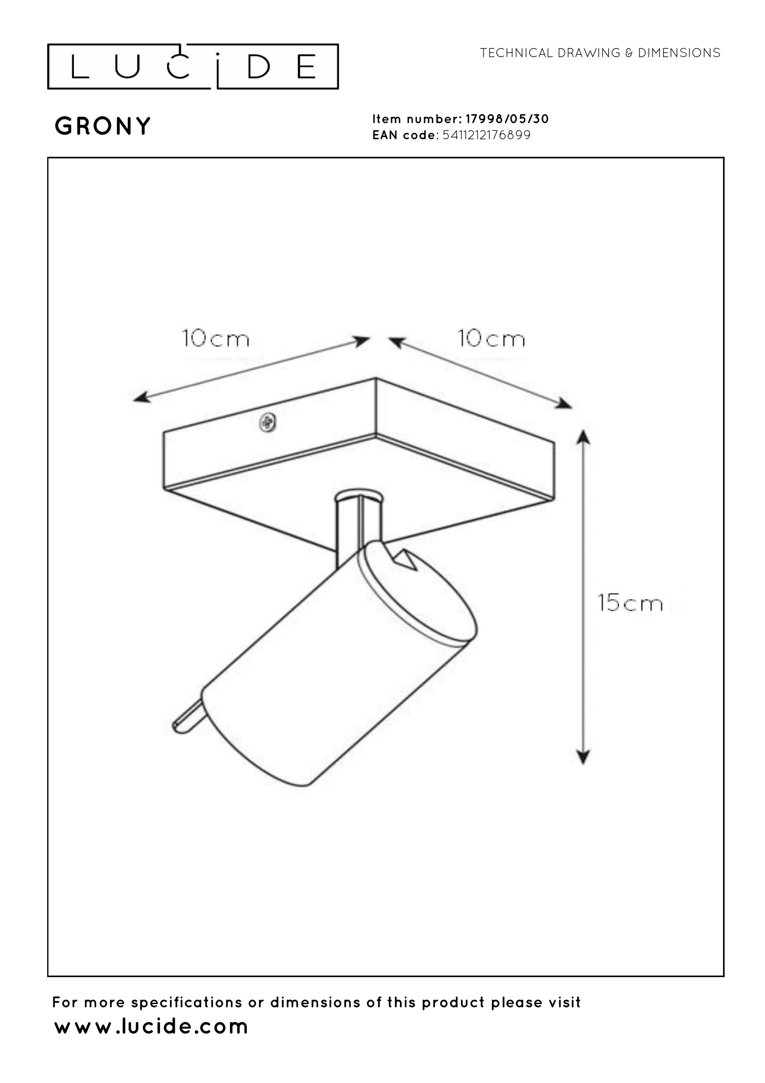 Grony se puede utilizar como foco de pared o de techo. Parece un simple foco negro, pero el diseño de Grony tiene sutiles toques de color que le hacen aportar mucho más. Su pequeña barra dorada también es funcional, ya que permite girar e inclinar fácilmente la fuente de luz en la dirección que desees. Grony funciona perfectamente en interiores de estilo moderno, pero también combina muy bien con diseños rústicos. La luminaria dispone de un foco, incluido en el producto, con la tecnología Dim-to-Warm, que permite variar la intensidad de la luz de 2200 a 3000 K. También puedes conectar Grony a un regulador de luz.