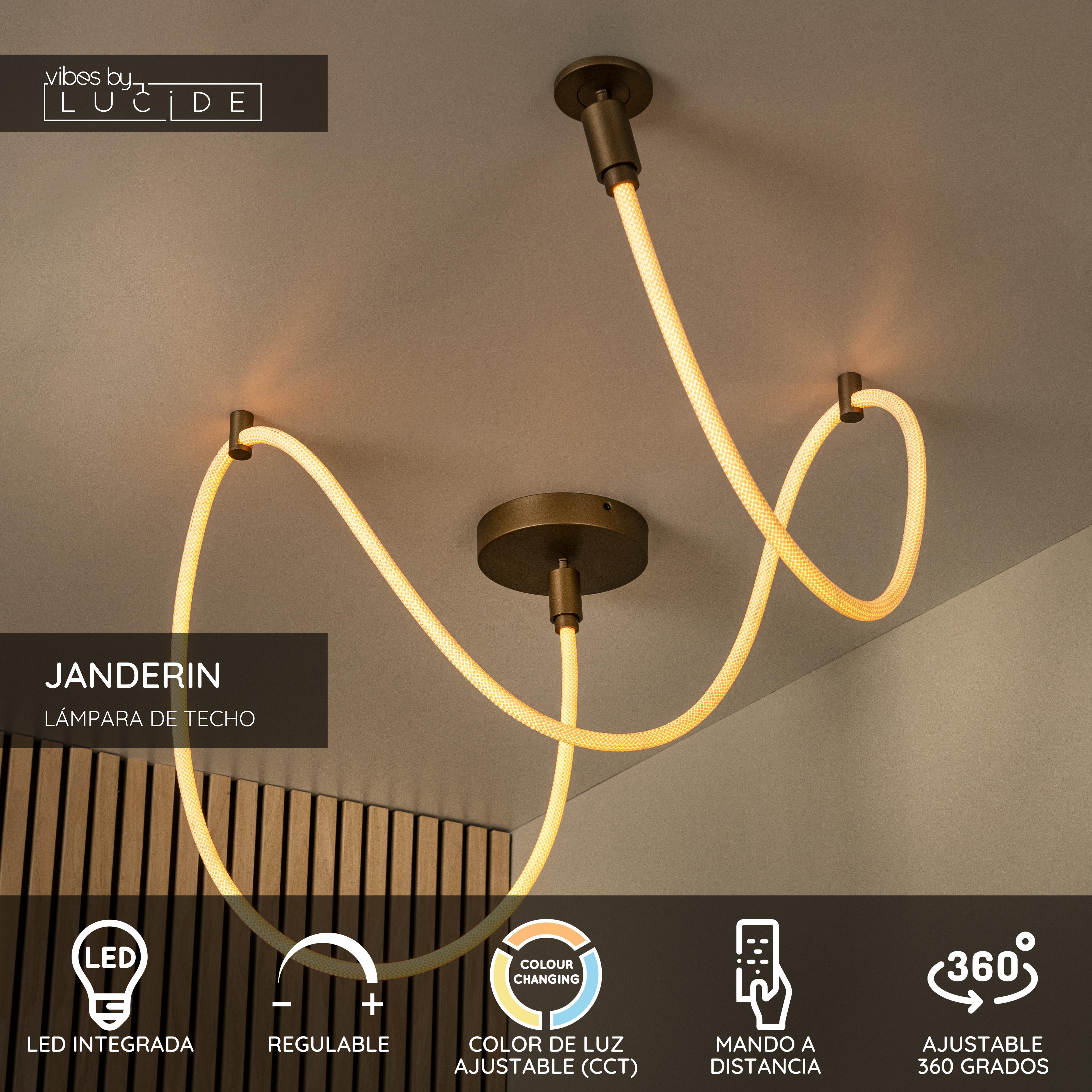 Dale a tu interior una mejora impresionante con la Lucide JANDERIN. Esta exclusiva lámpara de techo de aluminio color champán combina un diseño refinado con la máxima comodidad de uso. Gracias a la fuente de luz LED integrada (36W), puedes elegir fácilmente la temperatura de color deseada entre 2700K y 4000K con el mando a distancia incluido. La lámpara es giratoria, inclinable y ajustable en altura antes de la instalación, lo que ofrece una flexibilidad máxima. Con una longitud de 300 cm, un ancho de 18 cm y una altura de 18 cm, JANDERIN ilumina cualquier espacio con un resplandor suave y difuso. Descubre cómo la tecnología y la elegancia se unen en esta lámpara de techo inteligente.