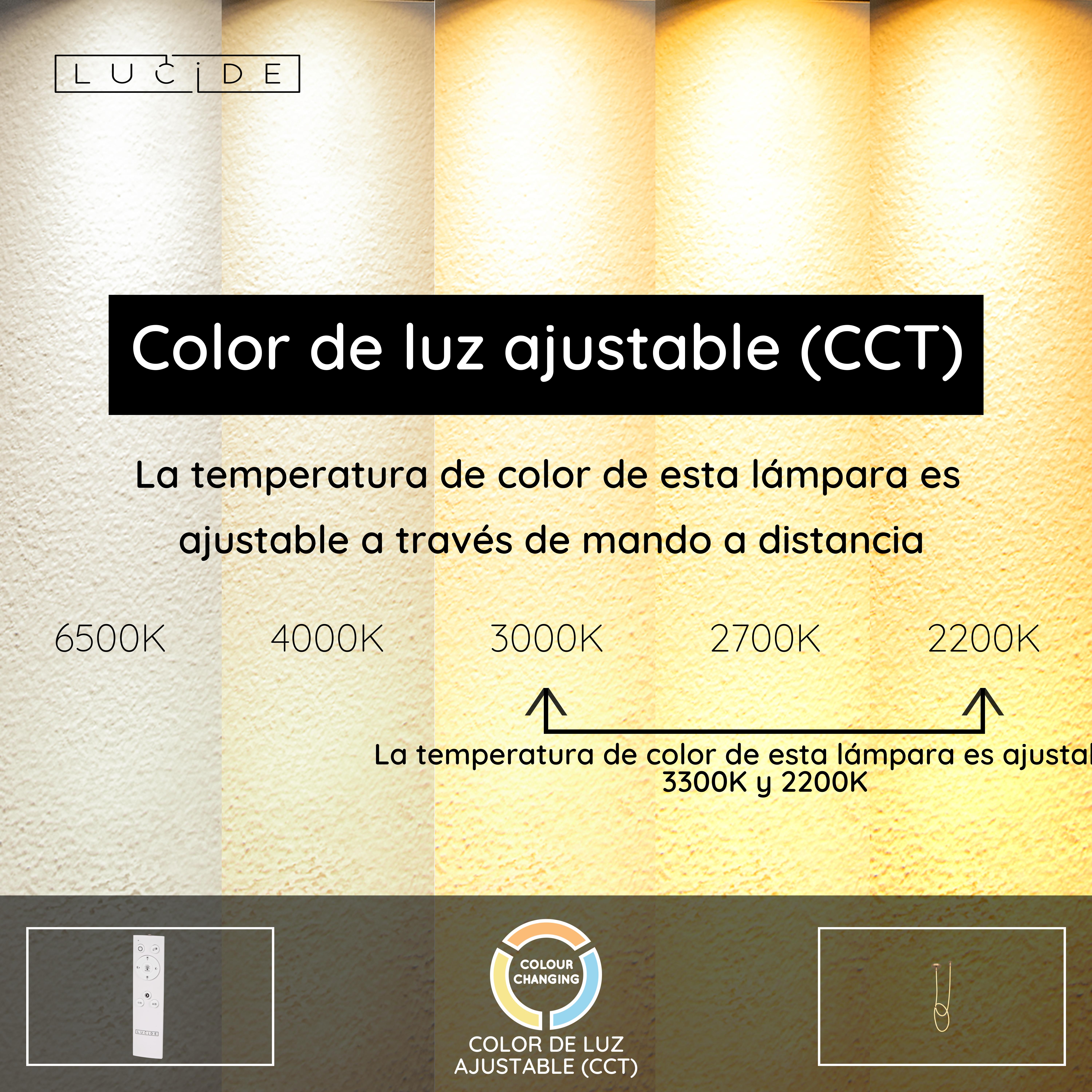 - Temperatura de color ajustable mediante mando a distancia (2200K-3300K)