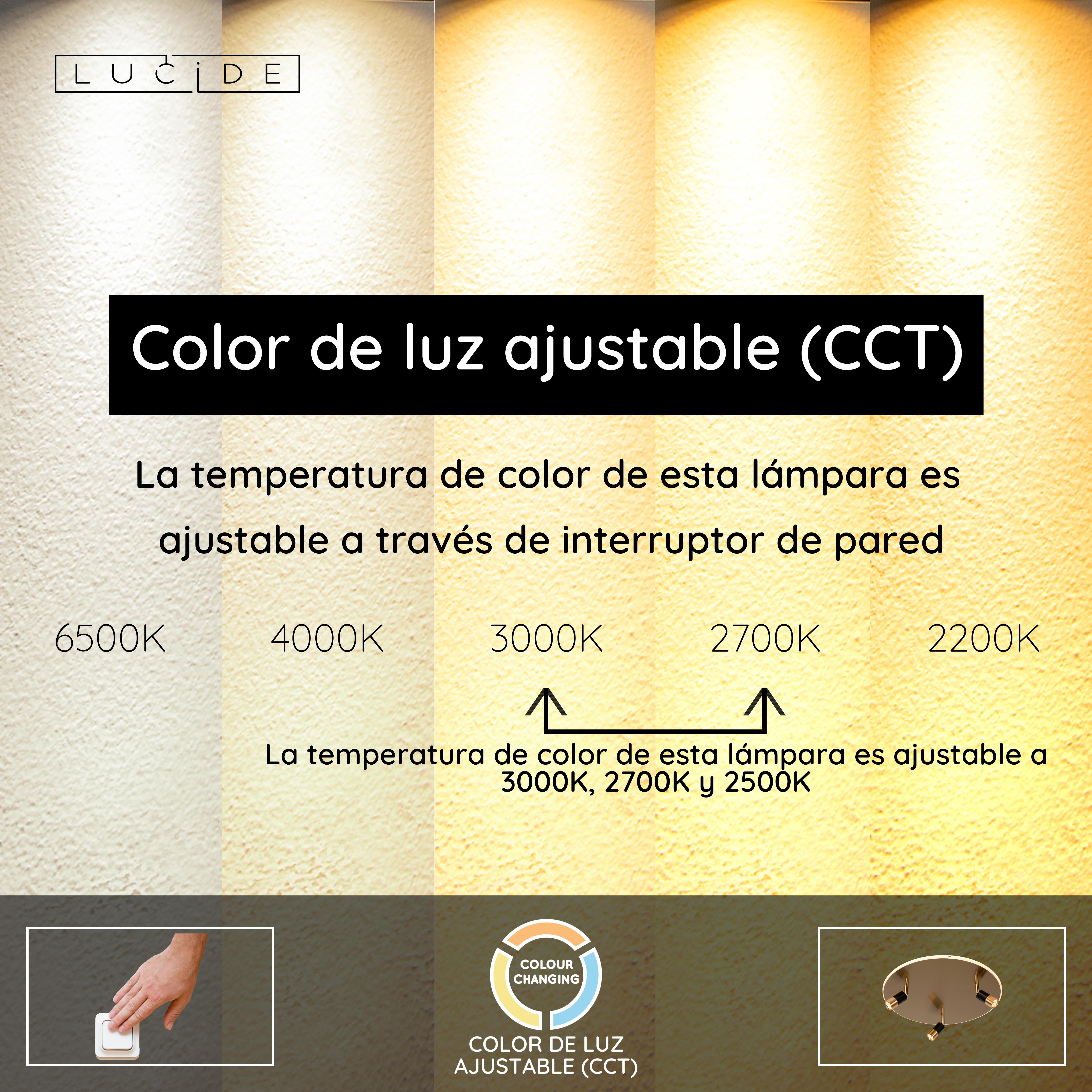 - Temperatura de color ajustable mediante interruptor de pared (2500K-3000K)