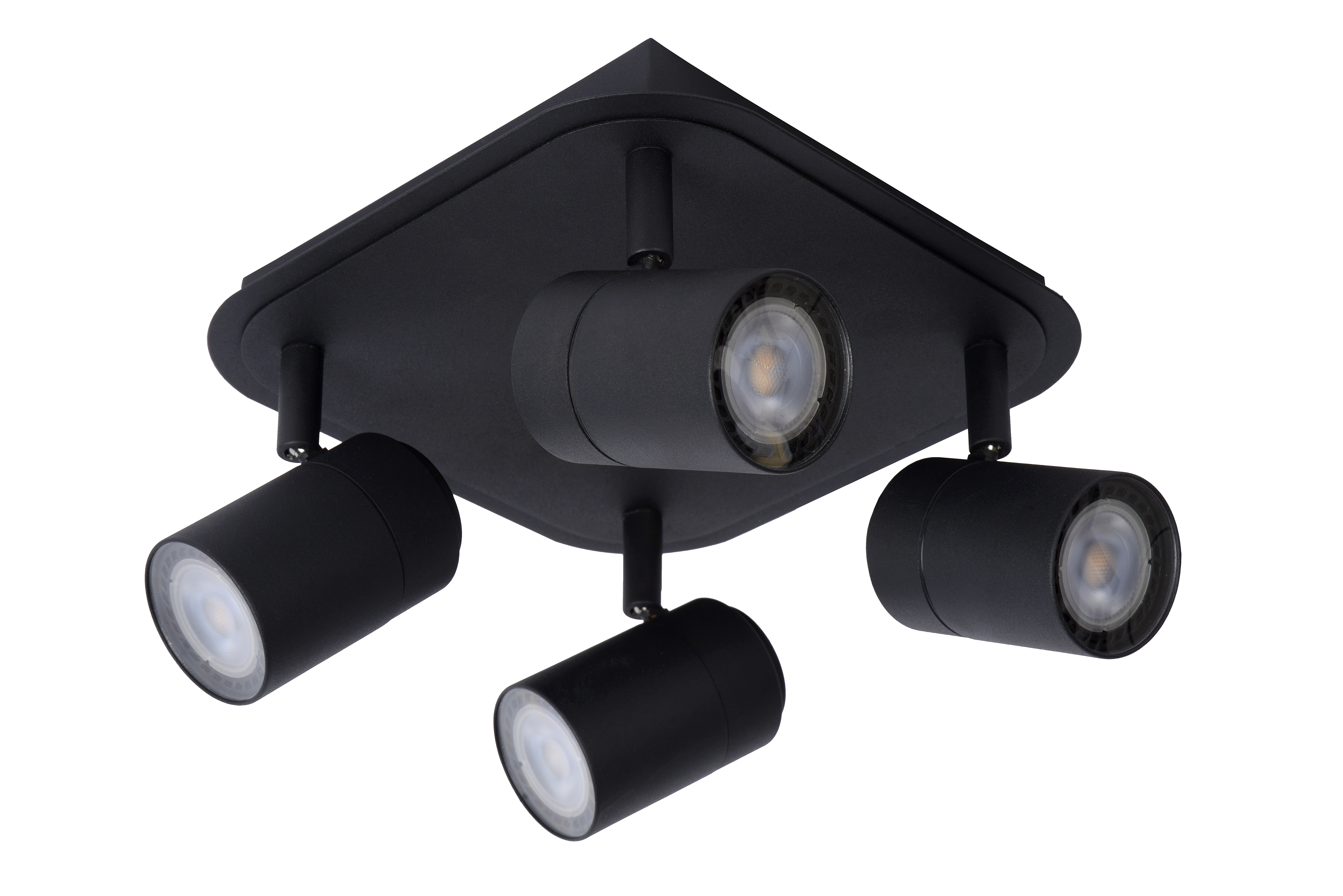 Lucide LENNERT - Foco de techo Baño - LED Regul. - GU10 - 4x5W 3000K - IP44 - Negro