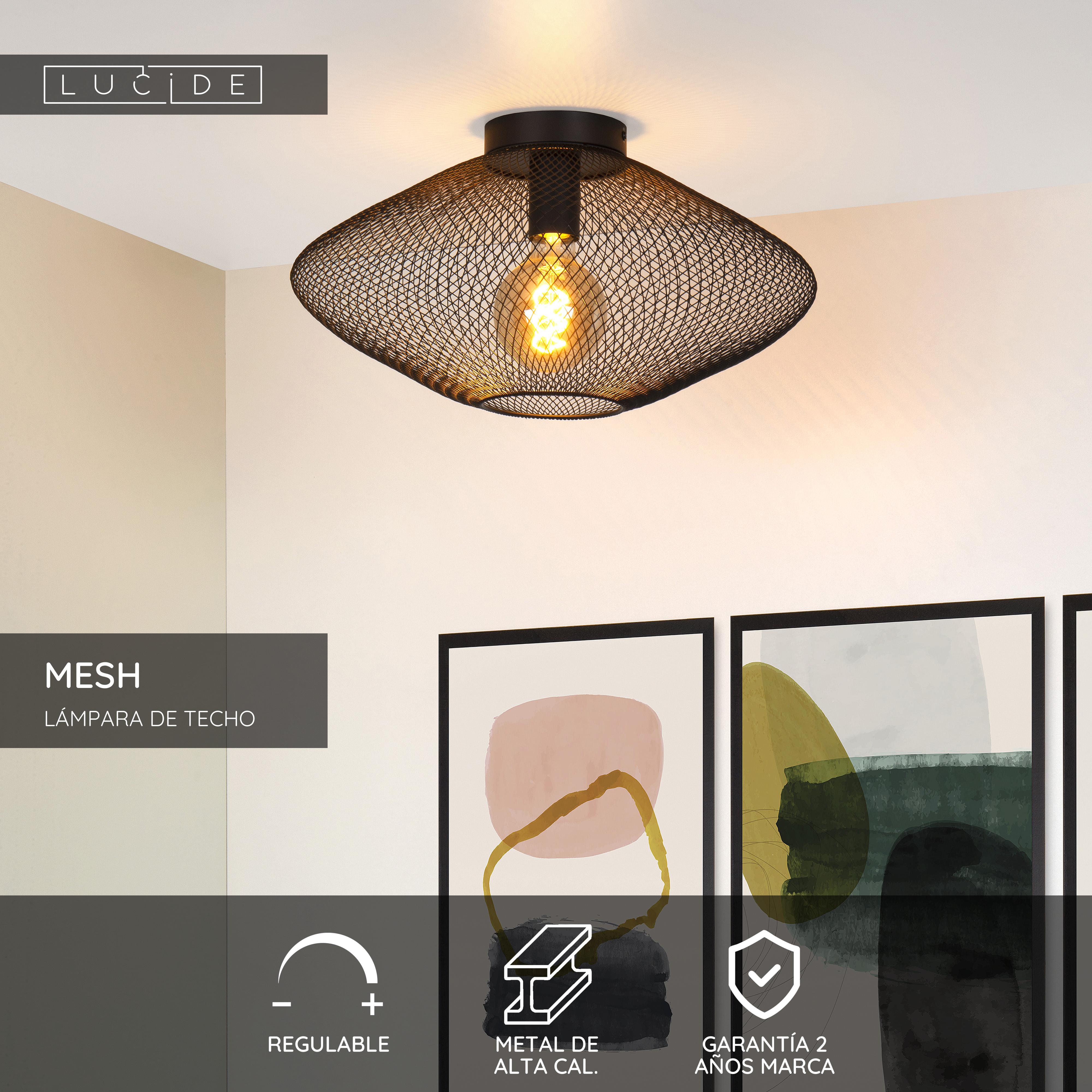 Lucide MESH - Lámpara de techo - Ø 45 cm - 1xE27 - Negro