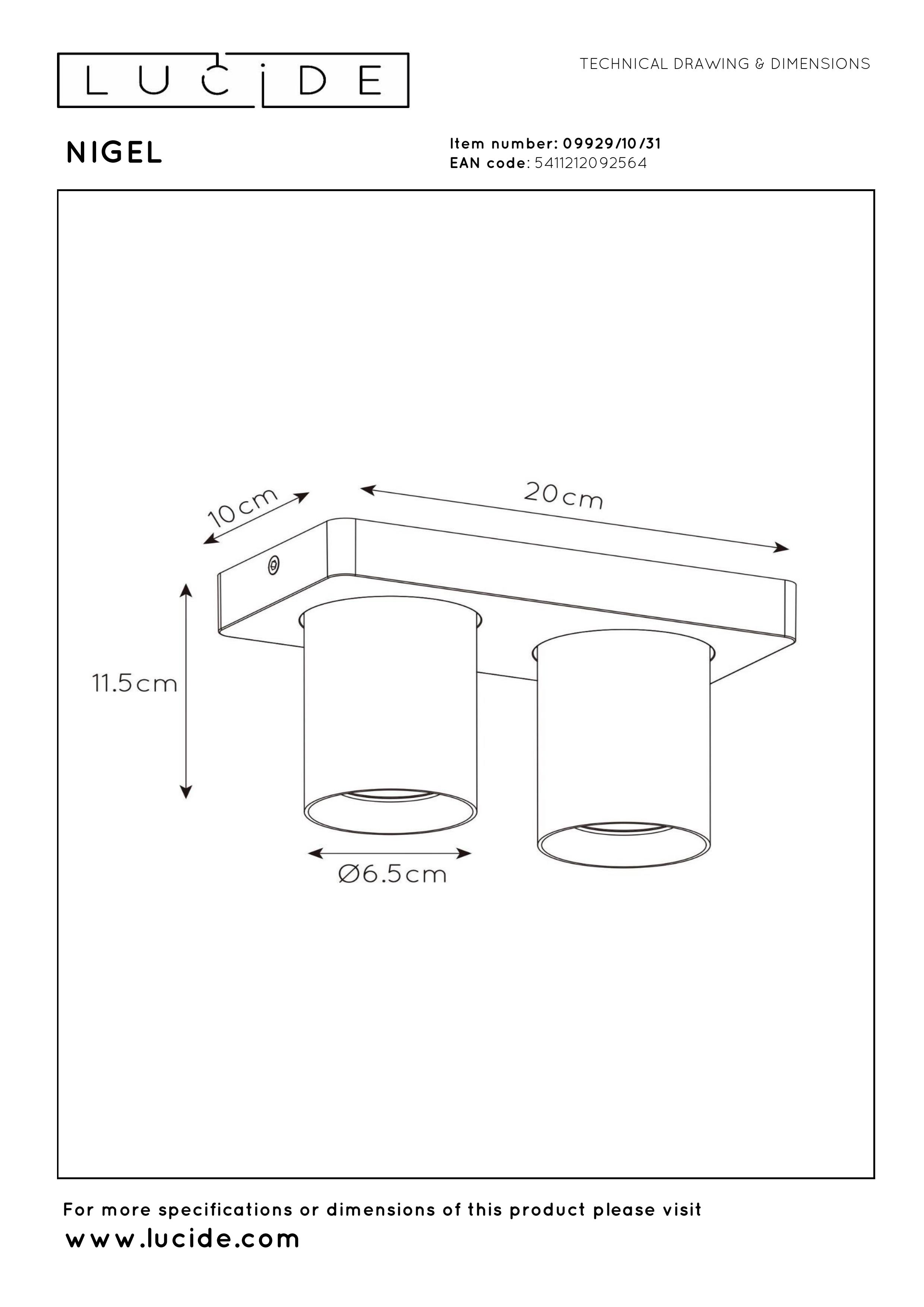 Nigel es un foco de techo compatible con dos bombillas led GU10 con tecnología Dim-to-Warm. Esta permite variar su temperatura de color entre 2200 y 3000k. El diseño de Nigel con su pantalla cilíndrica resulta sencillo y atemporal, para que el foco combine bien con todo tipo de estilos de interior. Nigel está disponible en los colores blanco y negro. Y se presenta con diferentes puntos de luz. La variante blanca tiene un acento de color negro en el interior de cada pantalla. Este foco de techo está fabricado en aluminio y tiene una altura de 12 centímetros. Solo tienes que instalar Nigel en el techo, conectarlo a un regulador de luz, girar e inclinar los focos a tu gusto y disfrutar.