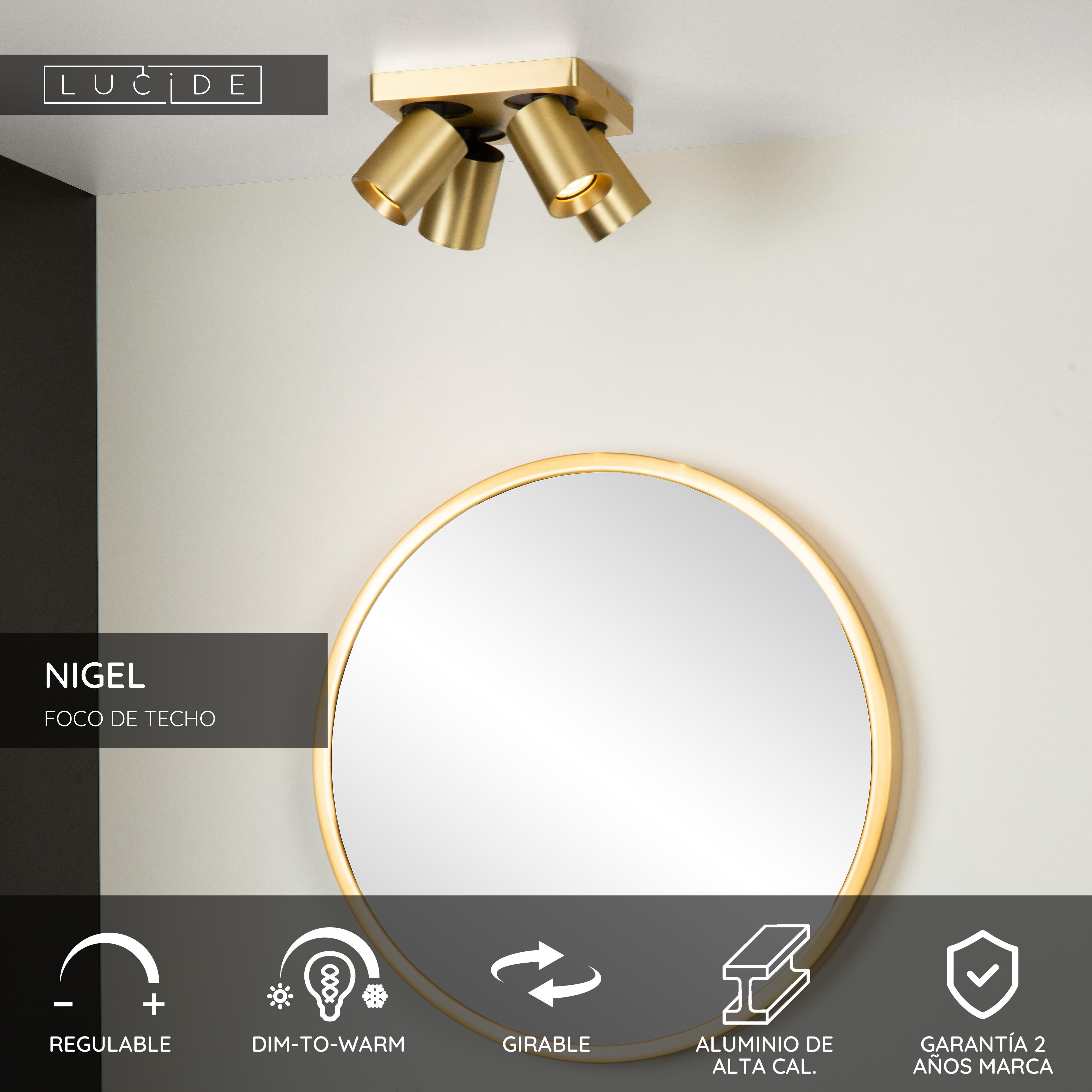Lucide NIGEL - Foco de techo - LED Dim to warm - GU10 - 4x5W 2200K/3000K - Oro mate / Latón