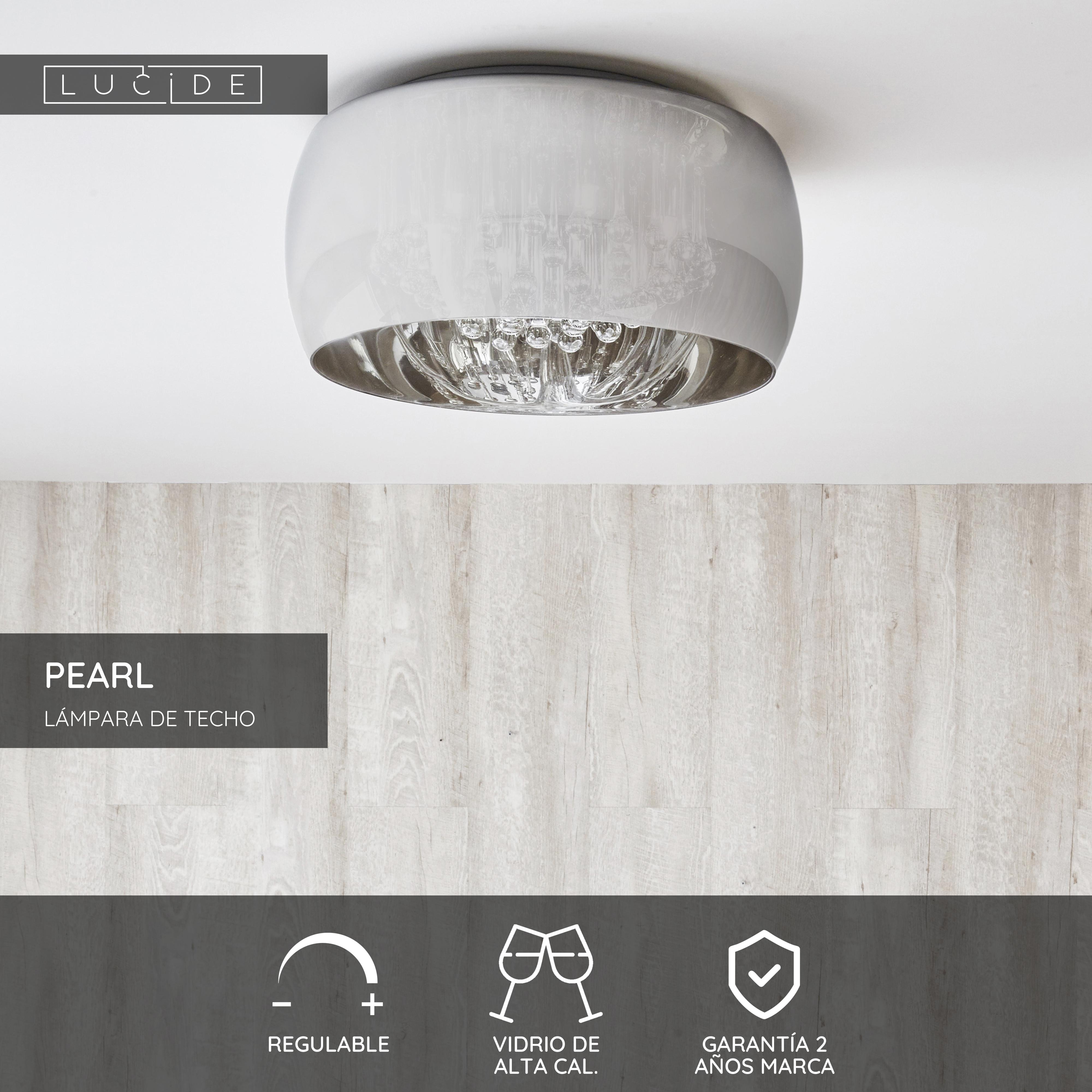 Con su pantalla de cristal soplado a mano de 50 cm de diámetro, la hermosa lámpara de techo Pearl de Lucide es uno de los pocos modelos que, literalmente, se sigue fabricando según los métodos tradicionales. La correcta descripción del material de la pantalla sería "cristal ahumado semitransparente". Crea una combinación de reflejo y transparencia que le da a Pearl ese punto lujoso y cálido a la vez. El plafón Pearl, de Lucide, encaja perfectamente tanto en un interior de estilo rústico como moderno.