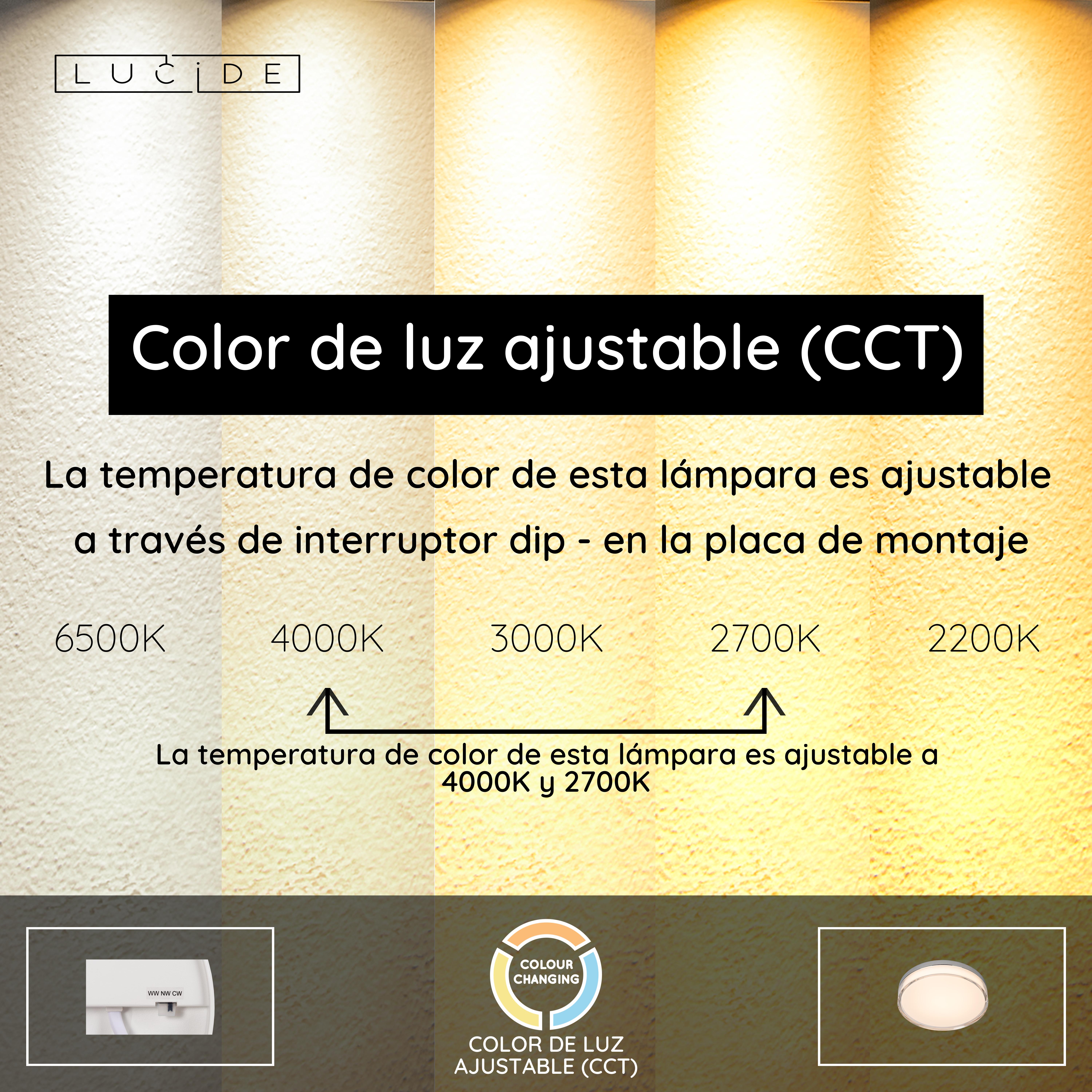 - Temperatura de color ajustable mediante interruptor dip en la placa de montaje (2700K-4000K)