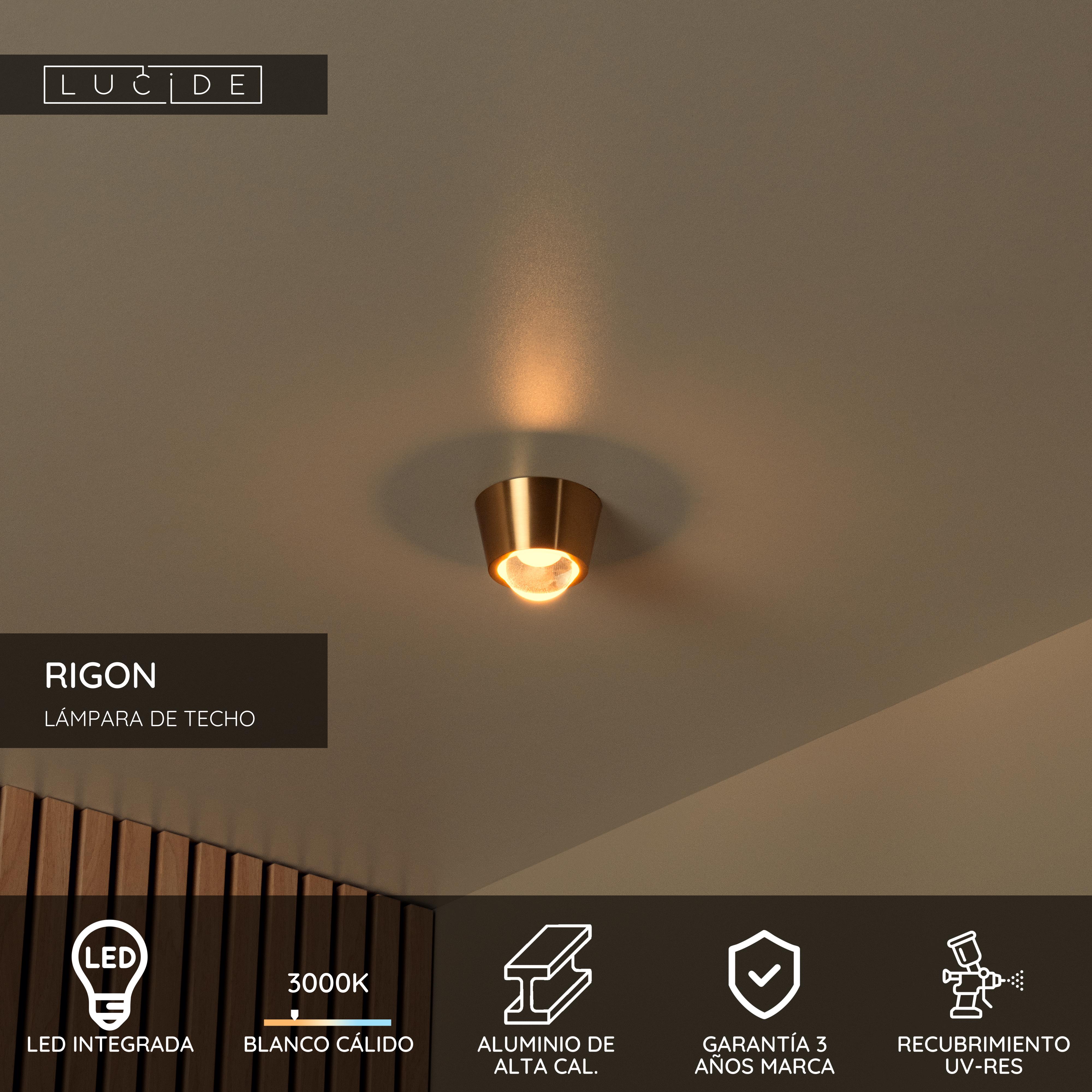 Lucide RIGON - Lámpara de techo - Ø 9 cm - LED - 1x7W 3000K - Oro mate / Latón