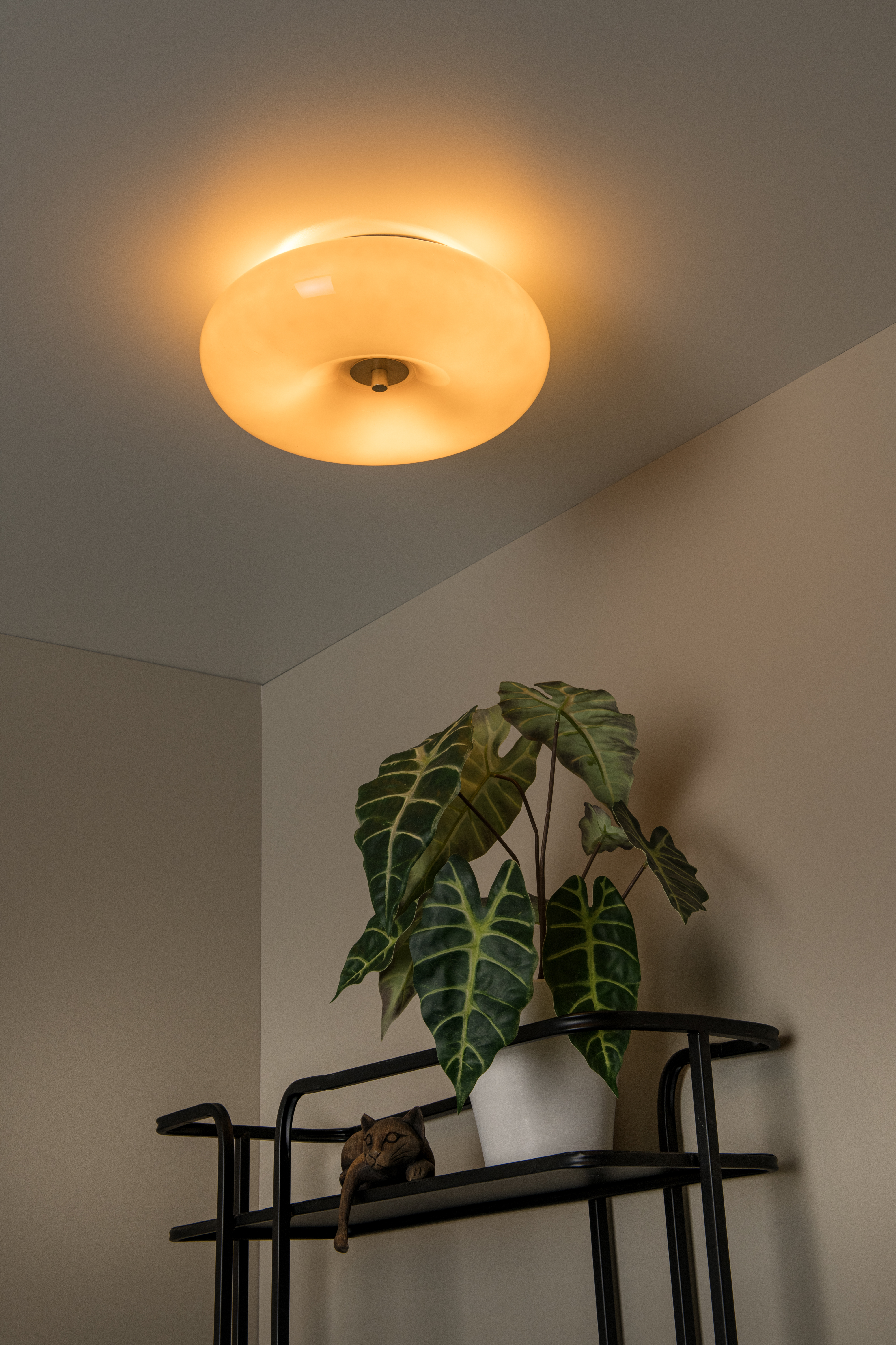 Marque la diferencia con la lámpara de techo Sentino. Su forma redonda, fabricada en cristal revestido brillante, proyecta una luz muy suave que baña toda la habitación en un cálido resplandor. Tanto cuando la lámpara de techo está encendida como cuando está apagada, su singular forma de rosquilla, rematada con un embellecedor en el centro, atraerá todas las miradas. Perfecta para el salón, la cocina, el dormitorio o el pasillo, Sentino es una pieza llamativa que añadirá un toque de estilo sesentero o contemporáneo a cualquier habitación.