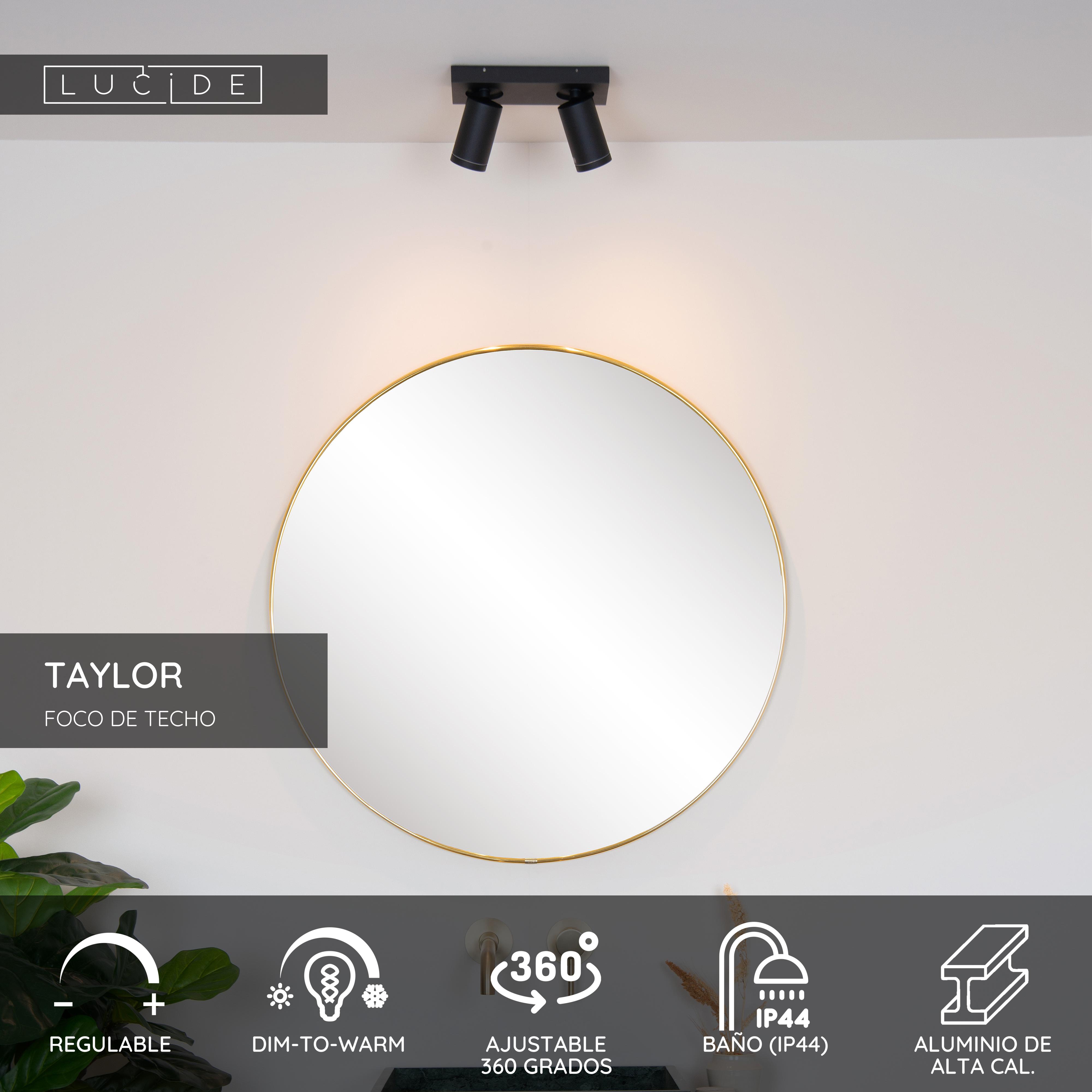 ¿Por qué es buena idea elegir una lámpara de baño con dos fuentes de luz? El foco de techo Taylor es un compendio de ventajas. Esta lámpara consta de dos focos giratorios e inclinables, montados en línea directamente sobre la placa de techo. Además, Taylor incluye las dos fuentes de luz regulables, equipadas con la tecnología Dim-to-Warm. Así podrás ajustar su luz a la temperatura de color deseada. Ideal para transmitir un poco de calor a esas mañanas frías de invierno. Taylor ha sido especialmente diseñada para un uso seguro en el cuarto de baño y en este sentido ha sido testada rigurosamente. El aluminio de alta calidad y los focos cilíndricos le dan a este plafón un aspecto moderno.