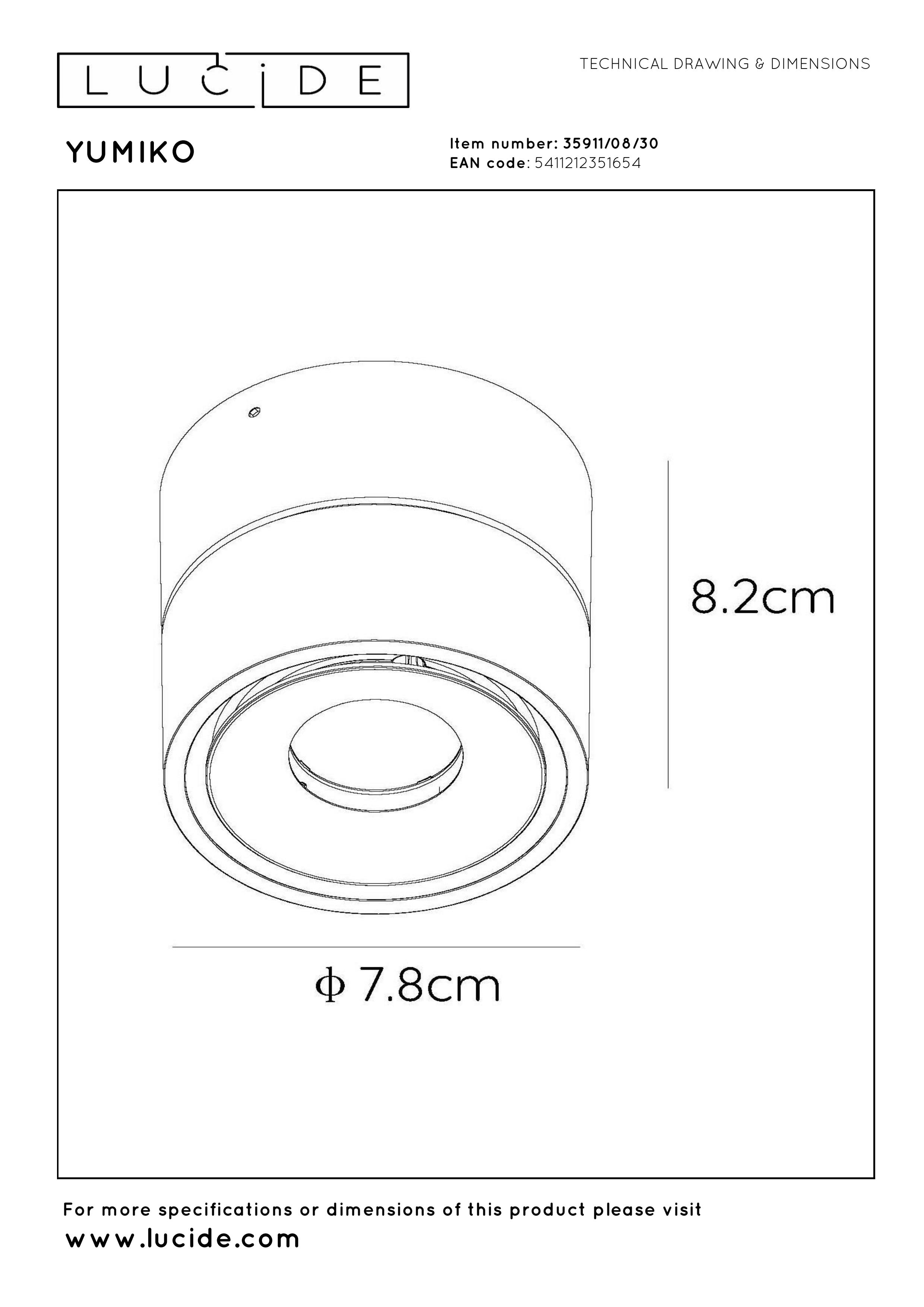 Lucide YUMIKO - Foco de techo - Ø 7,8 cm - LED Regul. - 1x10W 2700K - Negro
