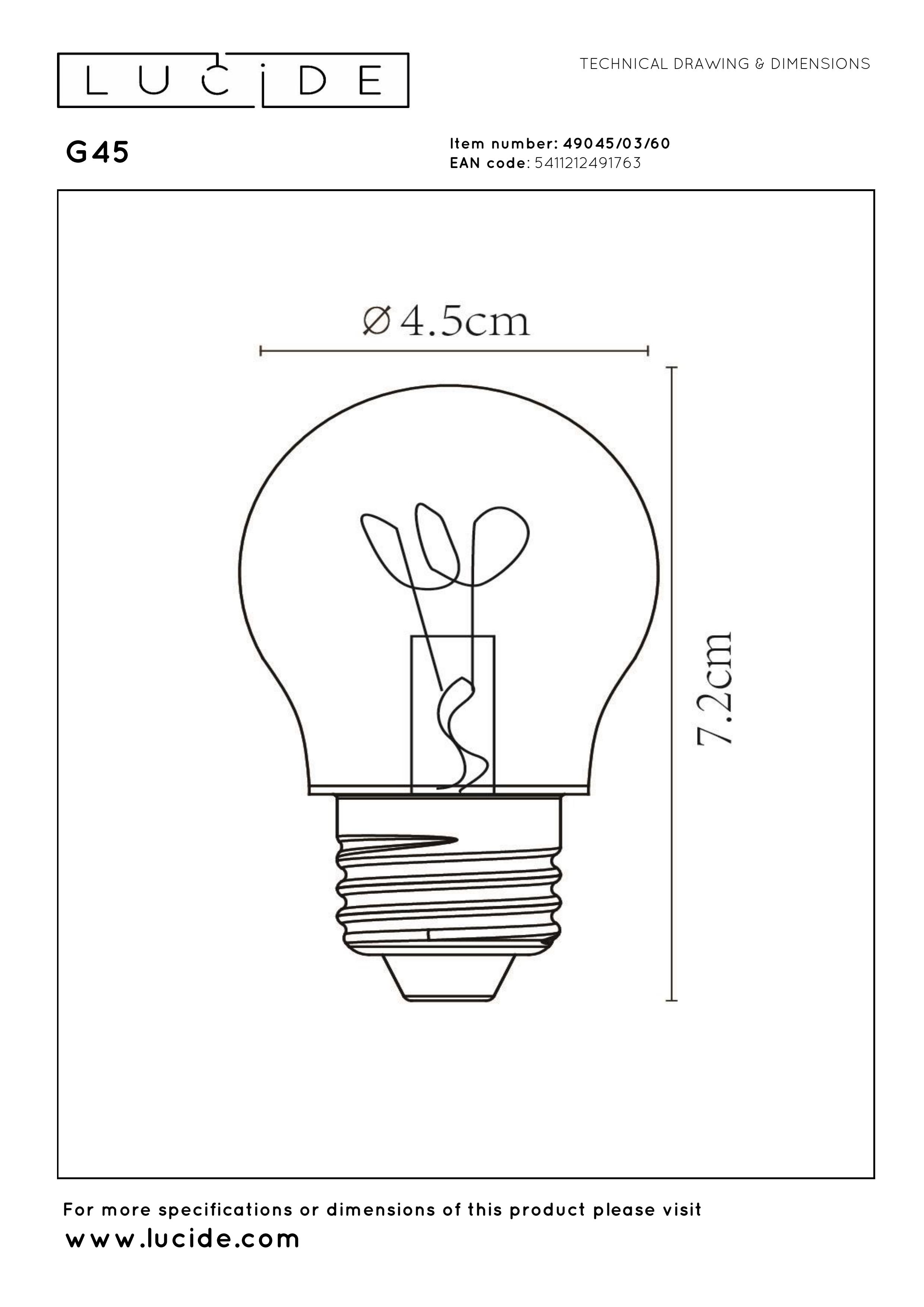Lucide G45 - Ampoule filament - Ø 4,5 cm - LED Dim. - E27 - 1x3W 2700K - Transparent