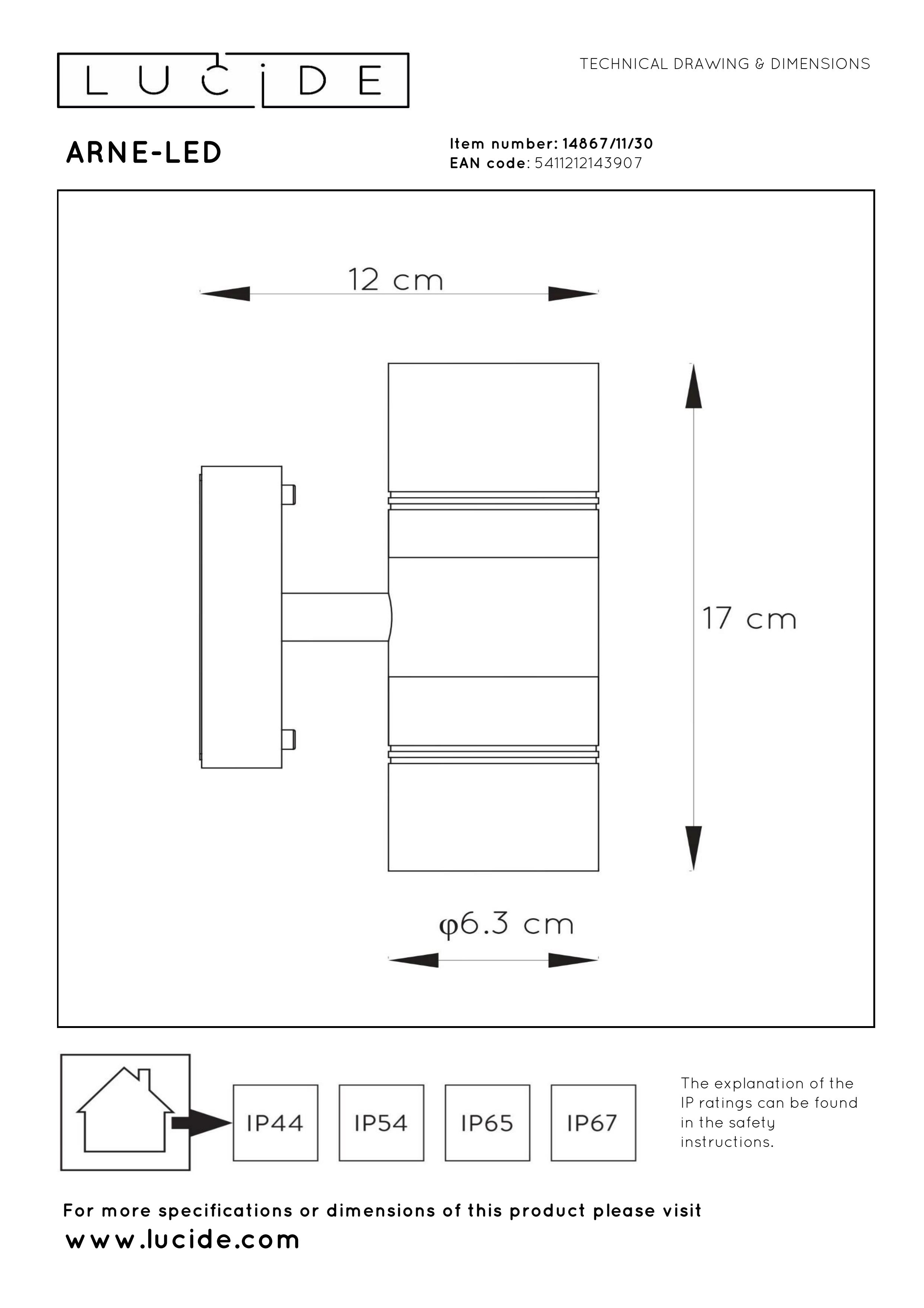 Lucide ARNE-LED - Spot mural / Applique mural Intérieur/Extérieur - Ø 6,3 cm - LED - GU10 - 2x5W 2700K - IP44 - Noir
