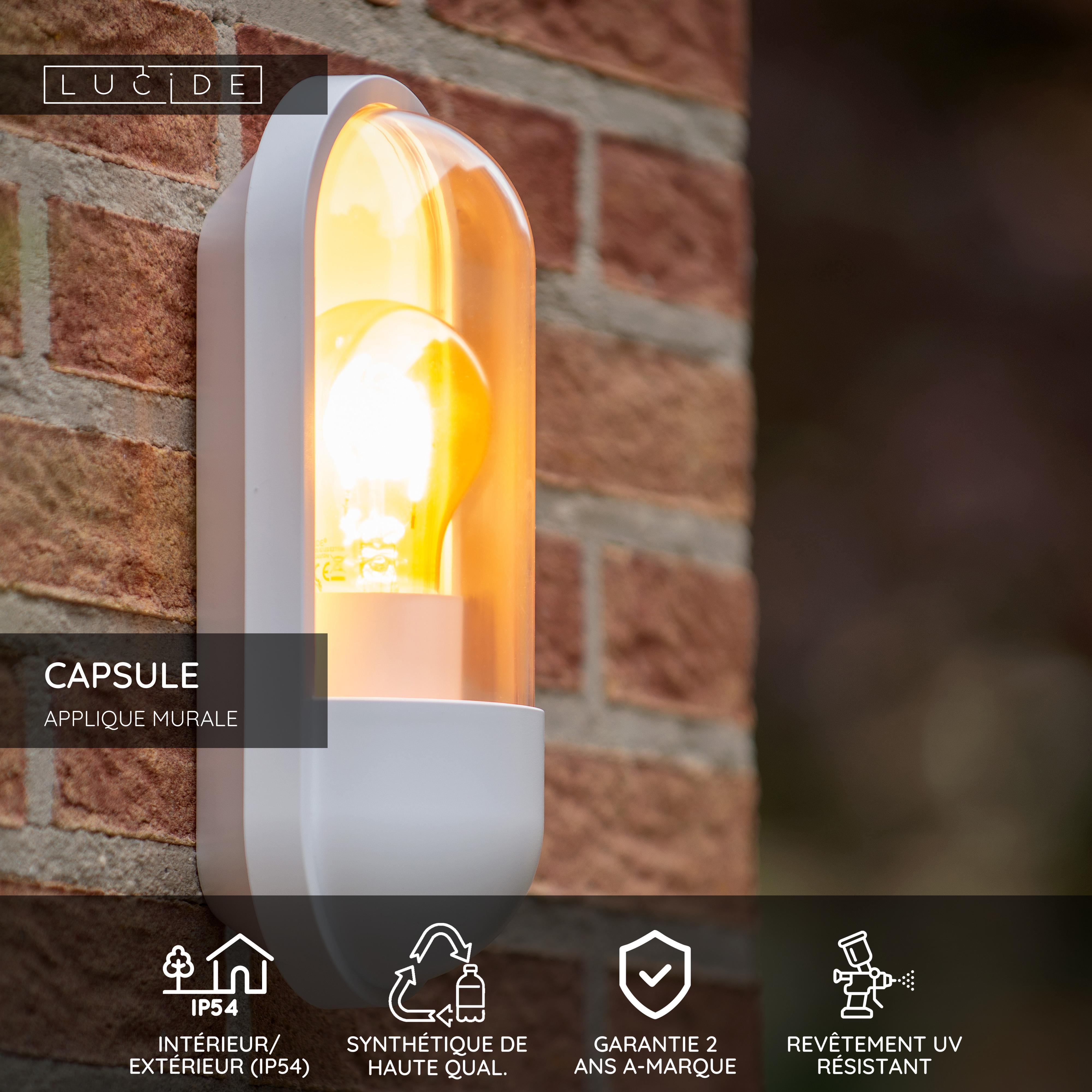 Lucide CAPSULE - Applique murale Intérieur/Extérieur - 1xE27 - IP54 - Blanc