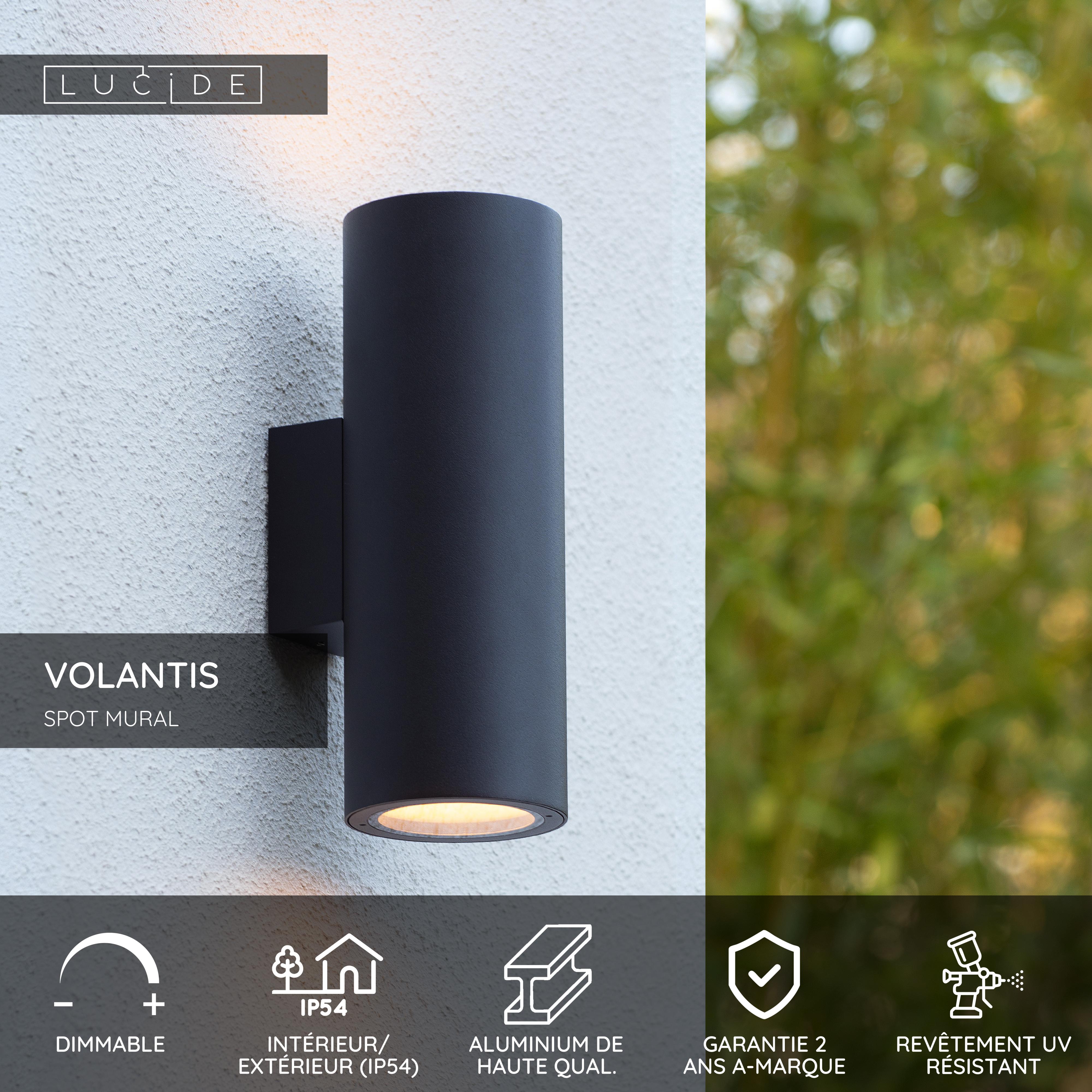 Lucide VOLANTIS - Spot mural / Applique mural Intérieur/Extérieur - 2xE27 - IP54 - Noir