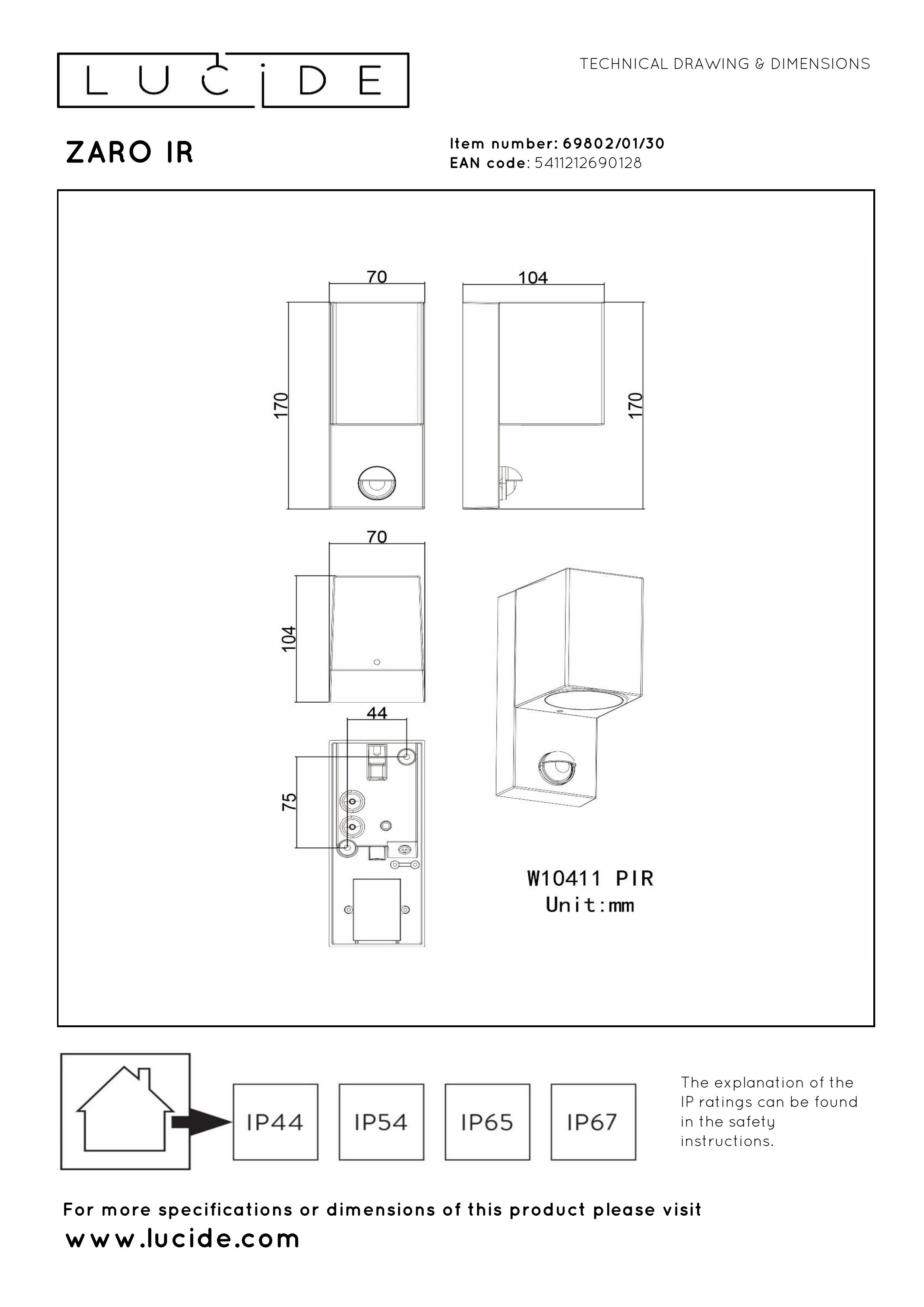 Une lampe d'extérieur avec détecteur de mouvement vous fait vous sentir en sécurité et vous aide à trouver rapidement la clé de votre maison lorsque vous rentrez chez vous dans l'obscurité. Mais Zaro IR, c'est bien plus que ça : ce spot mural compact et moderne est fabriqué en aluminium de haute qualité et sa lumière dirigée vers le bas éclaire votre façade, votre allée ou votre chemin du jardin pour que vous puissiez profiter encore plus de votre espace extérieur. Placez Zaro IR en série pour un effet maximal. Le spot élégant mesure 17 centimètres de haut et 10,4 centimètres de large, et convient à une source de lumière LED.