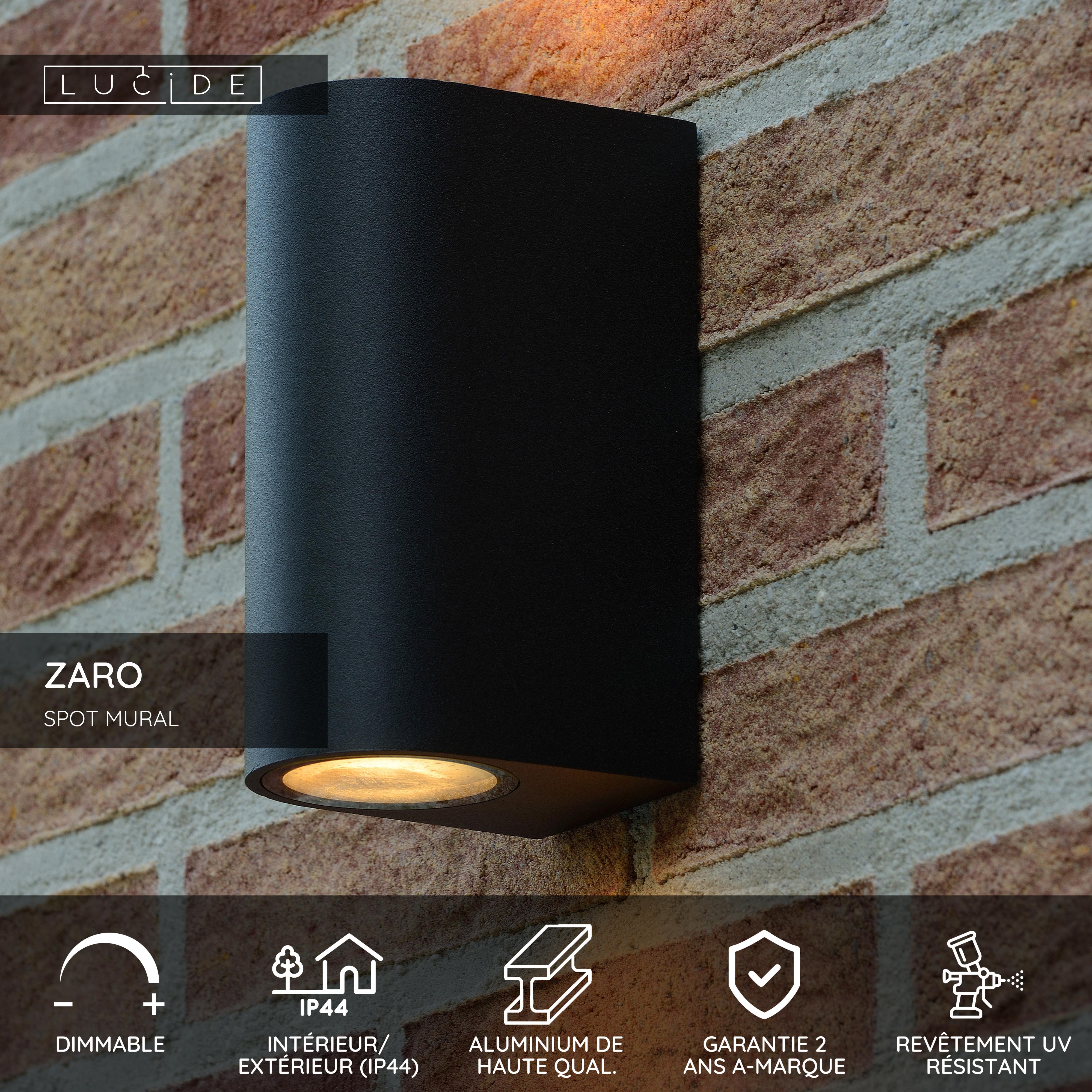 Lucide ZARO - Spot mural / Applique mural Intérieur/Extérieur - 2xGU10 - IP44 - Noir