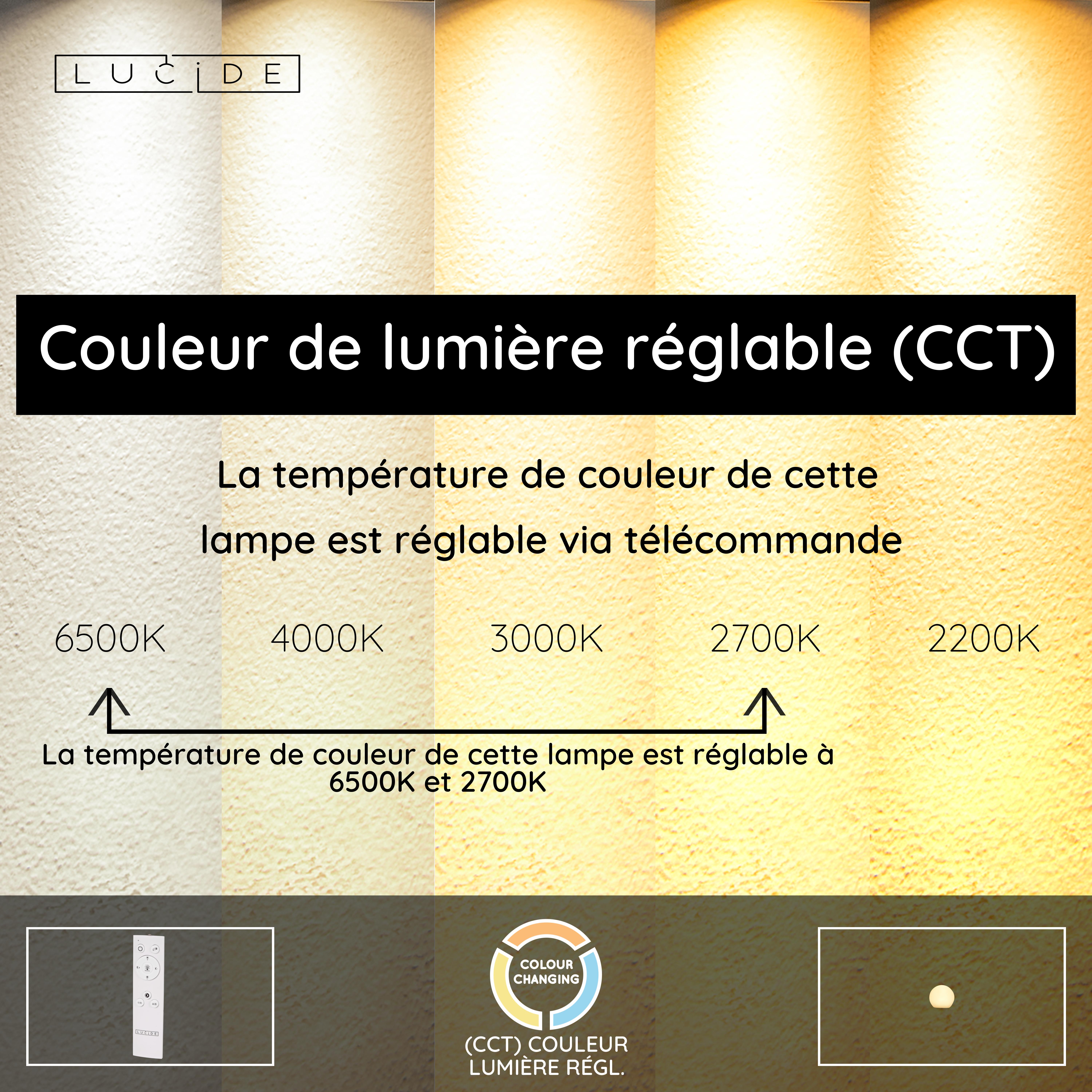 - Température de couleur réglable via télécommande (2700K-6500K)