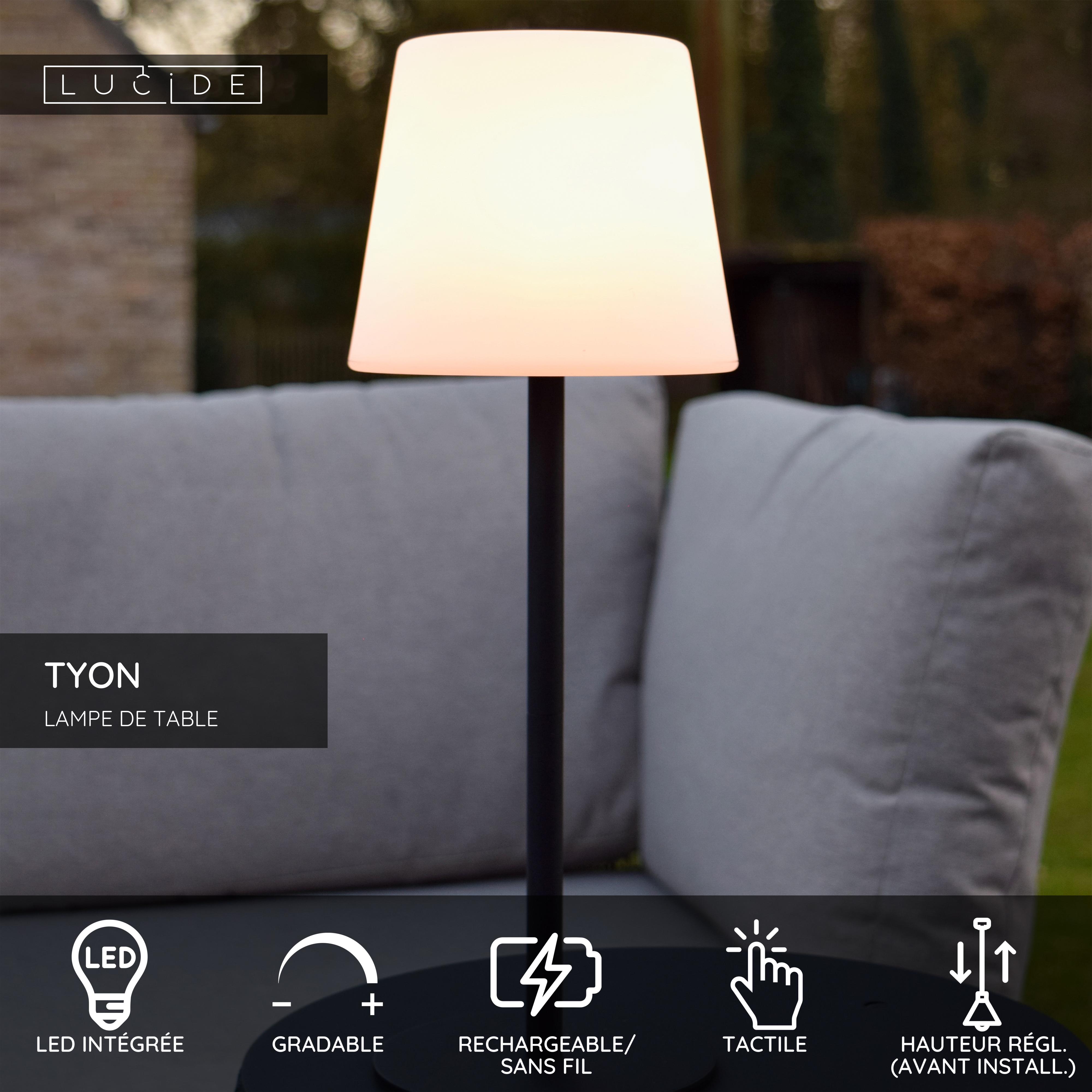Lucide TYON - Lampe de table Rechargeable Intérieur/Extérieur - Batterie/Piles - LED Dim. - 1x2W 2700K - IP65 - Noir