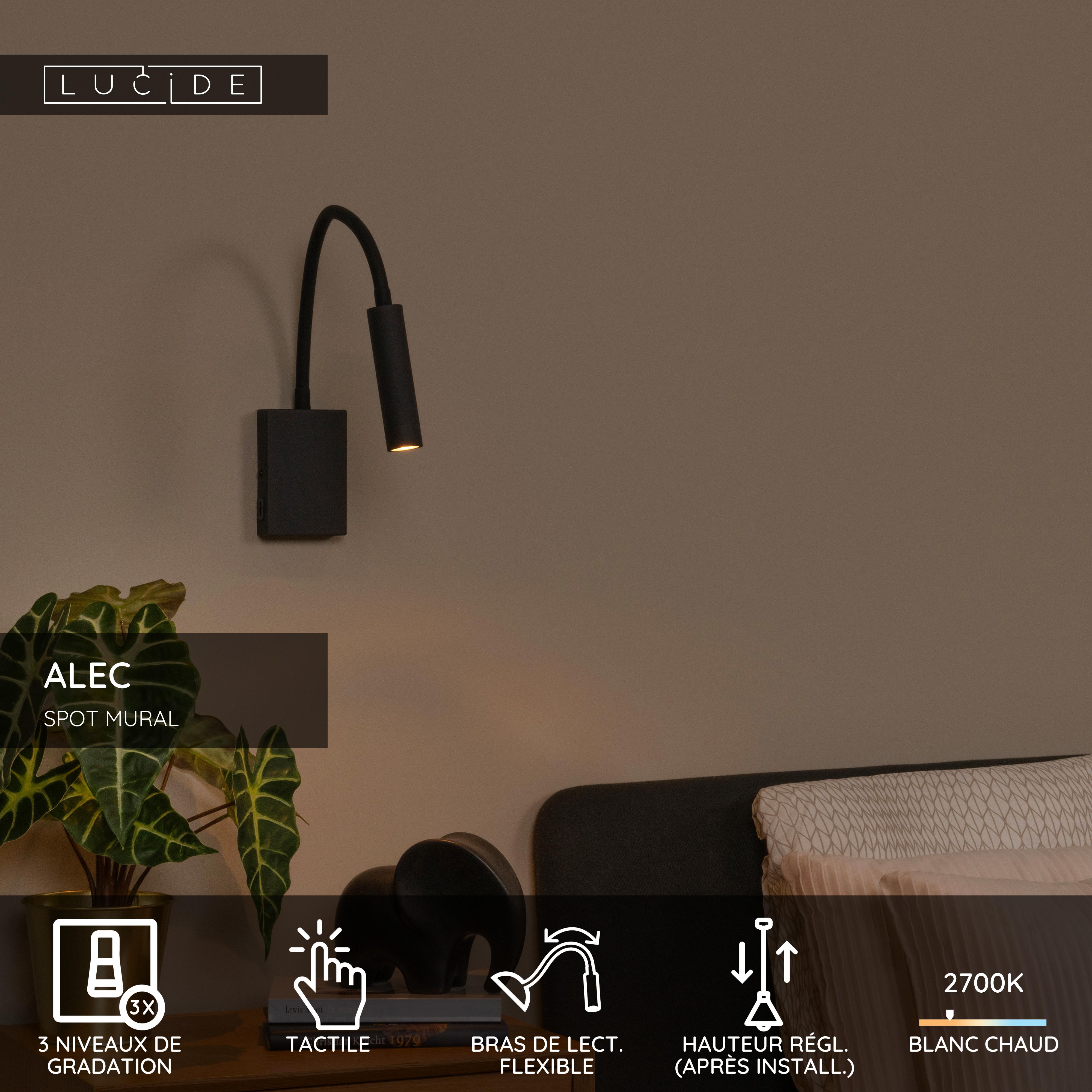 Avec son design élégant et allongé, cette applique murale est le compagnon idéal pour votre fauteuil de lecture ou votre table de chevet. Conçu en métal de haute qualité, Alec insuffle une bouffée de modernité à votre intérieur. Grâce à son spot orientable et à sa lumière chaude, cet éclairage mural flexible est parfait pour dévorer un bon livre le soir. Lumières éteintes ? Grâce à l'interrupteur pratique sur le luminaire, vous n'avez pas besoin de sortir du lit ou du fauteuil pour éteindre la lampe. Cette lampe de lecture contemporaine est livrée avec des anneaux interchangeables et une source lumineuse.