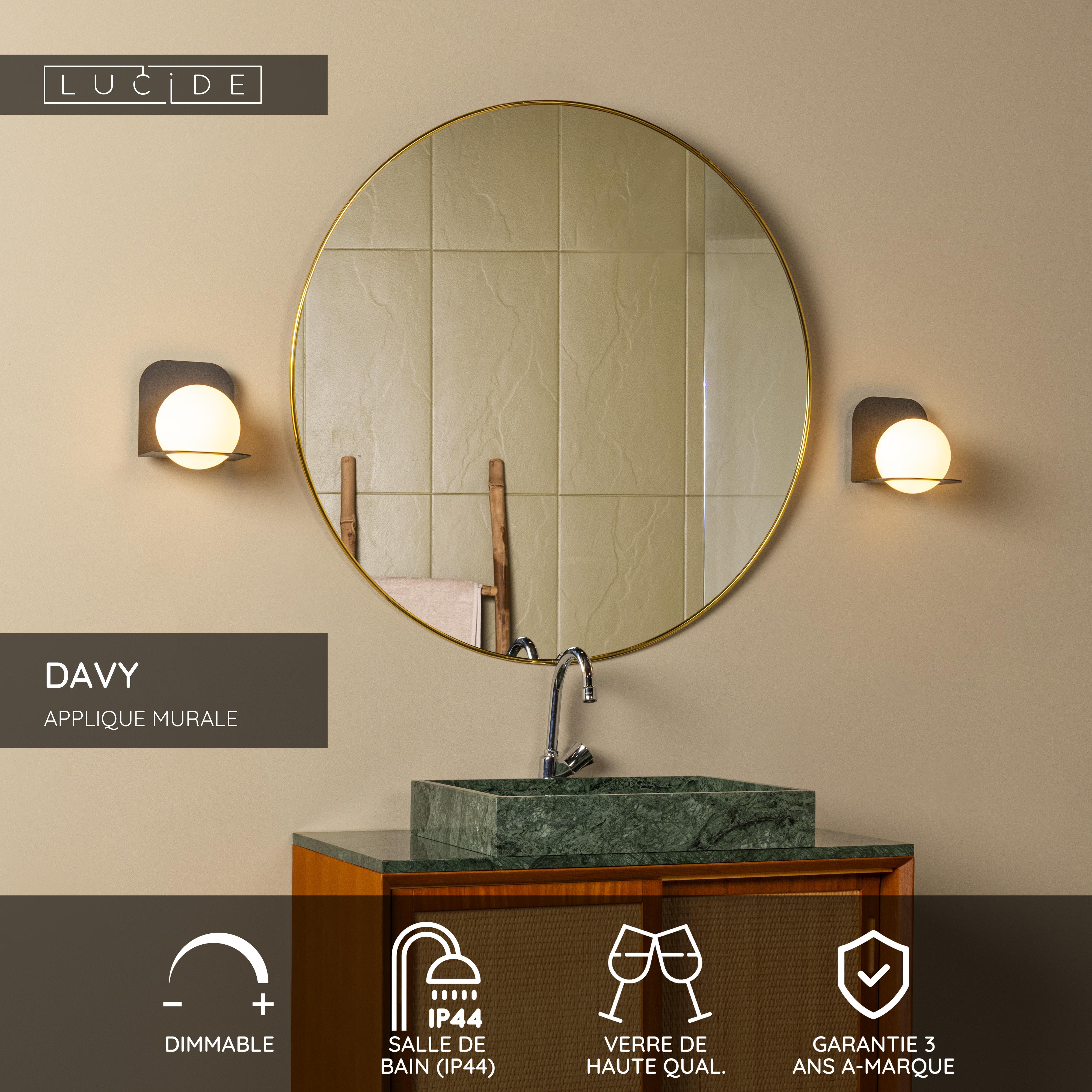 Lucide DAVY - Applique murale Salle de bains - 1xG9 - IP44 - Noir