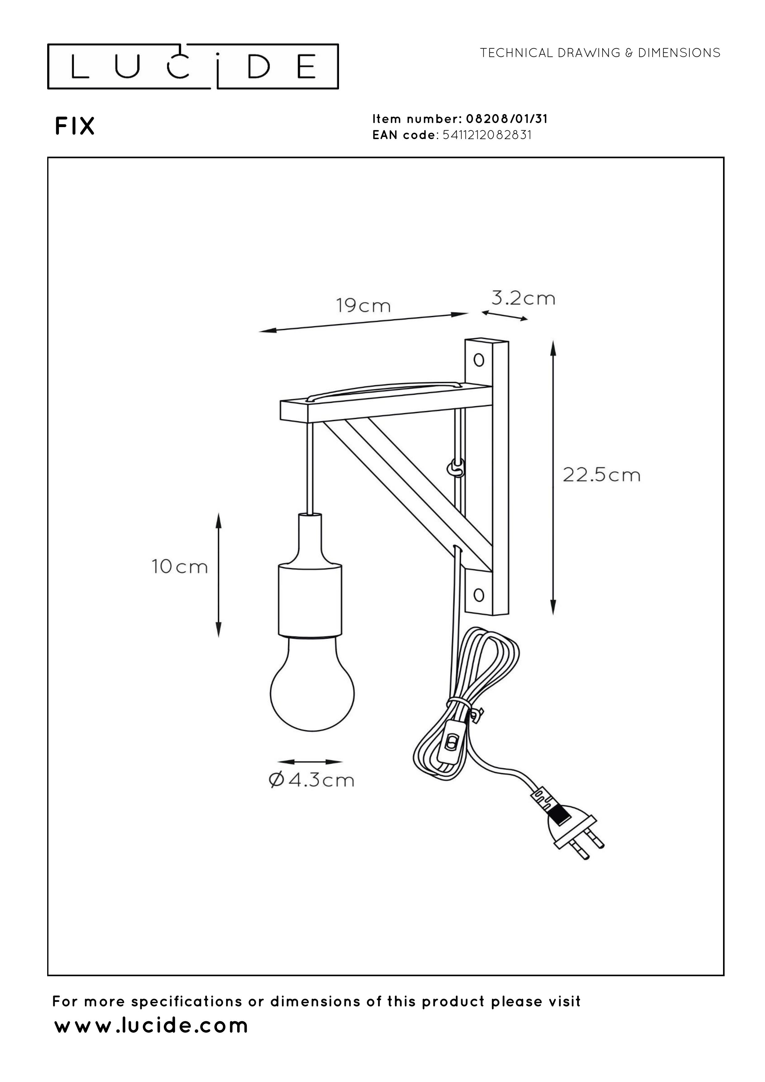 - Consommation énergétique: 1x60W / 230V / Sans intensité variable (Ampoule non incluse)