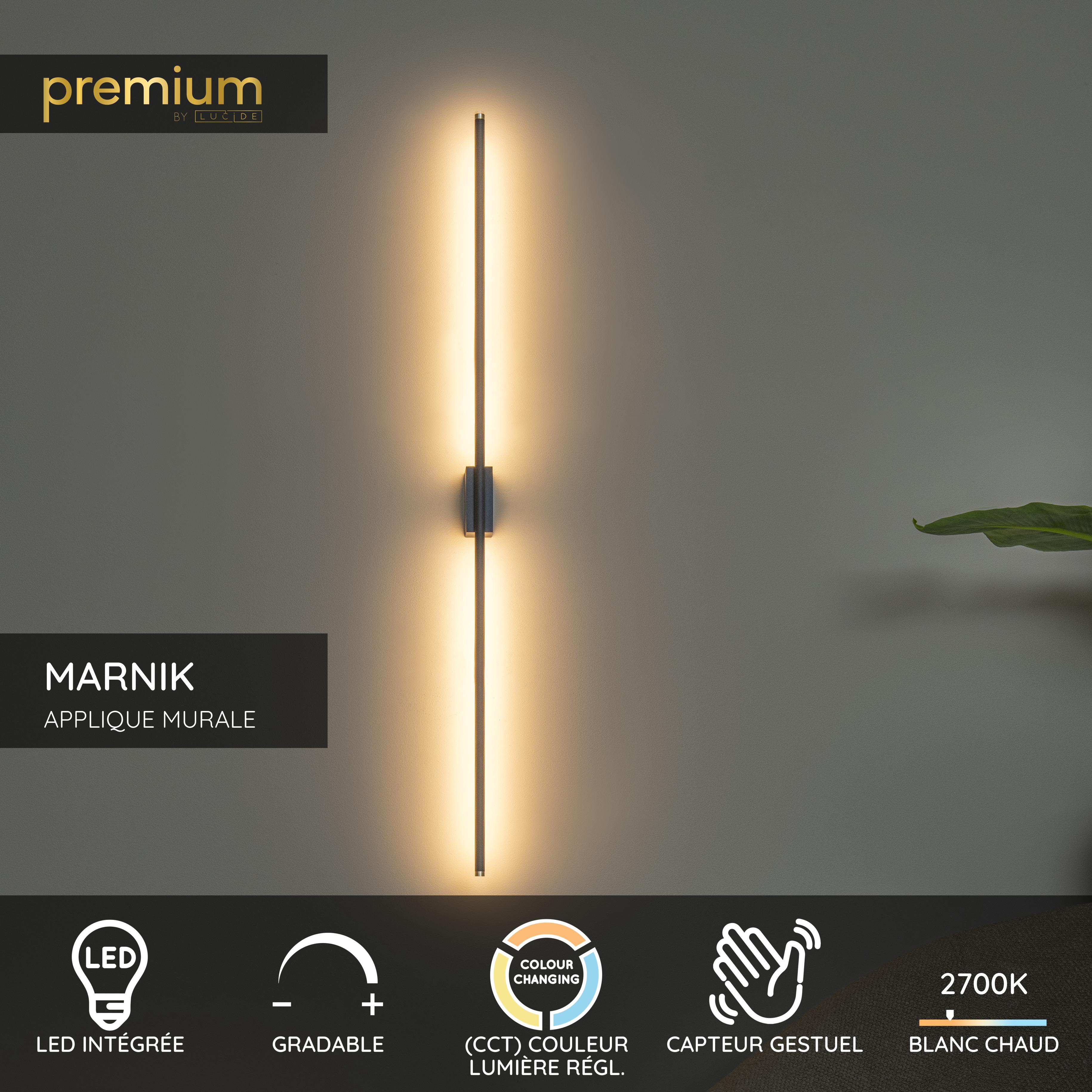 Alliez luxe et fonctionnalité avec l’applique murale Lucide Premium MARNIK. Ce luminaire moderne, fabriqué en aluminium de haute qualité, dégage élégance et raffinement. Grâce à sa source lumineuse LED intégrée (18W), profitez d’un éclairage lumineux et économe en énergie. La température de couleur est facilement réglable entre 2700K et 4000K via undétecteur à balayage manuel, vous permettant de créer l’ambiance idéale à tout moment. De plus, cette lampe est dimmable , vous offrant un contrôle total sur l’intensité lumineuse. Avec une longueur de 97,5 cm et un design épuré, MARNIK s’intègre parfaitement aux intérieurs contemporains. Investissez dans le raffinement et la durabilité avec cette applique murale exclusive de la collection Lucide Premium. Commandez dès maintenant et offrez une touche luxueuse à votre intérieur! Ce produit ne doit pas être connecté à un interrupteur et ne peut être commandé que via les commandes intégrées au produit.