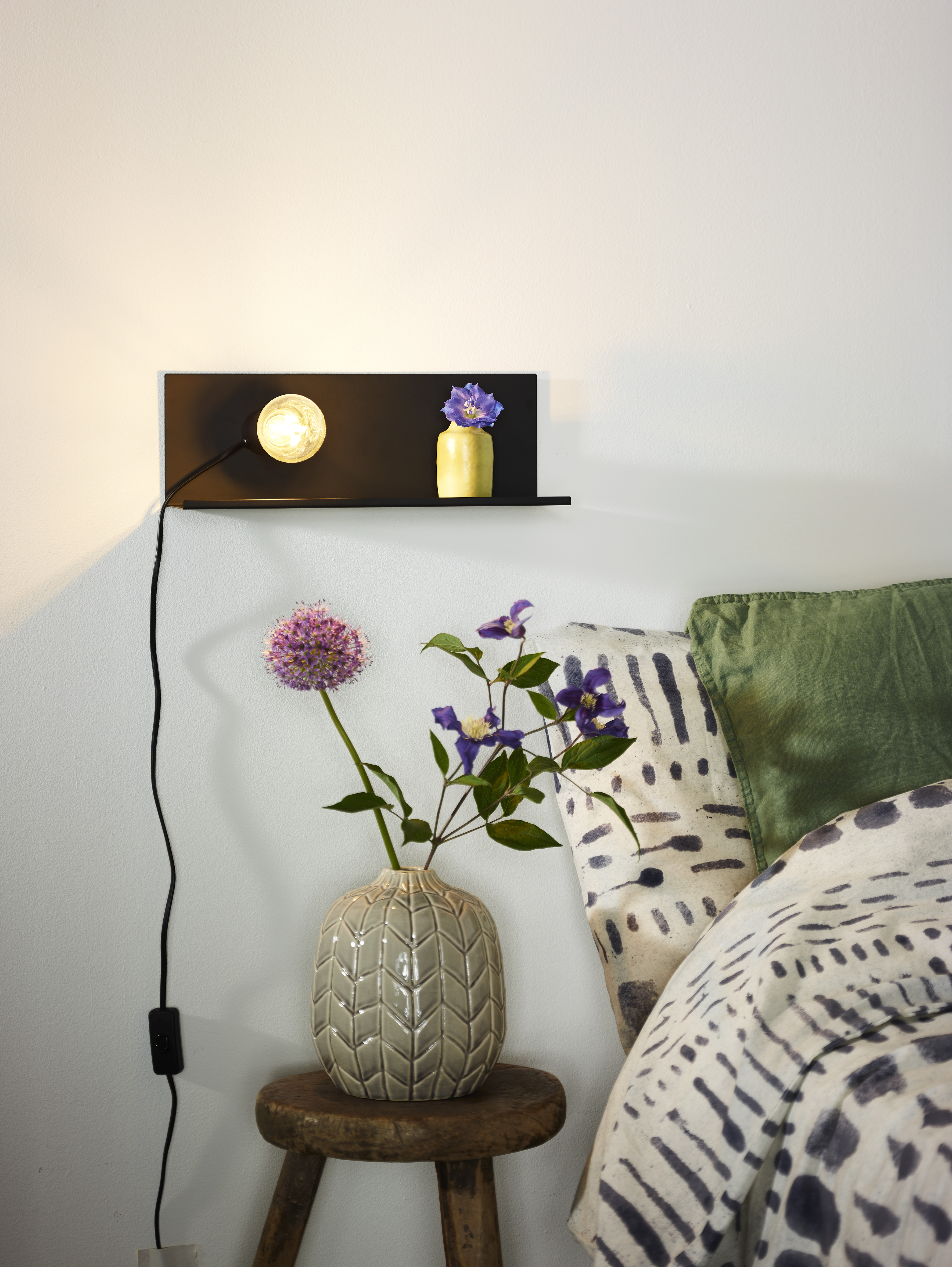 Vous êtes à la recherche d'une applique murale minimaliste pour votre chambre à coucher ? Cette lampe de chevet combine tous les atouts. Un design élégant avec des lignes pures, une compatibilité avec les ampoules LED et une simplicité d'utilisation avec l'interrupteur sur le câble. Vous serez séduit par la qualité du métal et sa finition parfaite. Avec une longueur de 35 centimètres, le luminaire trouvera parfaitement sa place au-dessus de votre table de chevet. Cet éclairage se prête magnifiquement à une chambre moderne. Le pied de la lampe s'attache magnétiquement à la plaque murale.