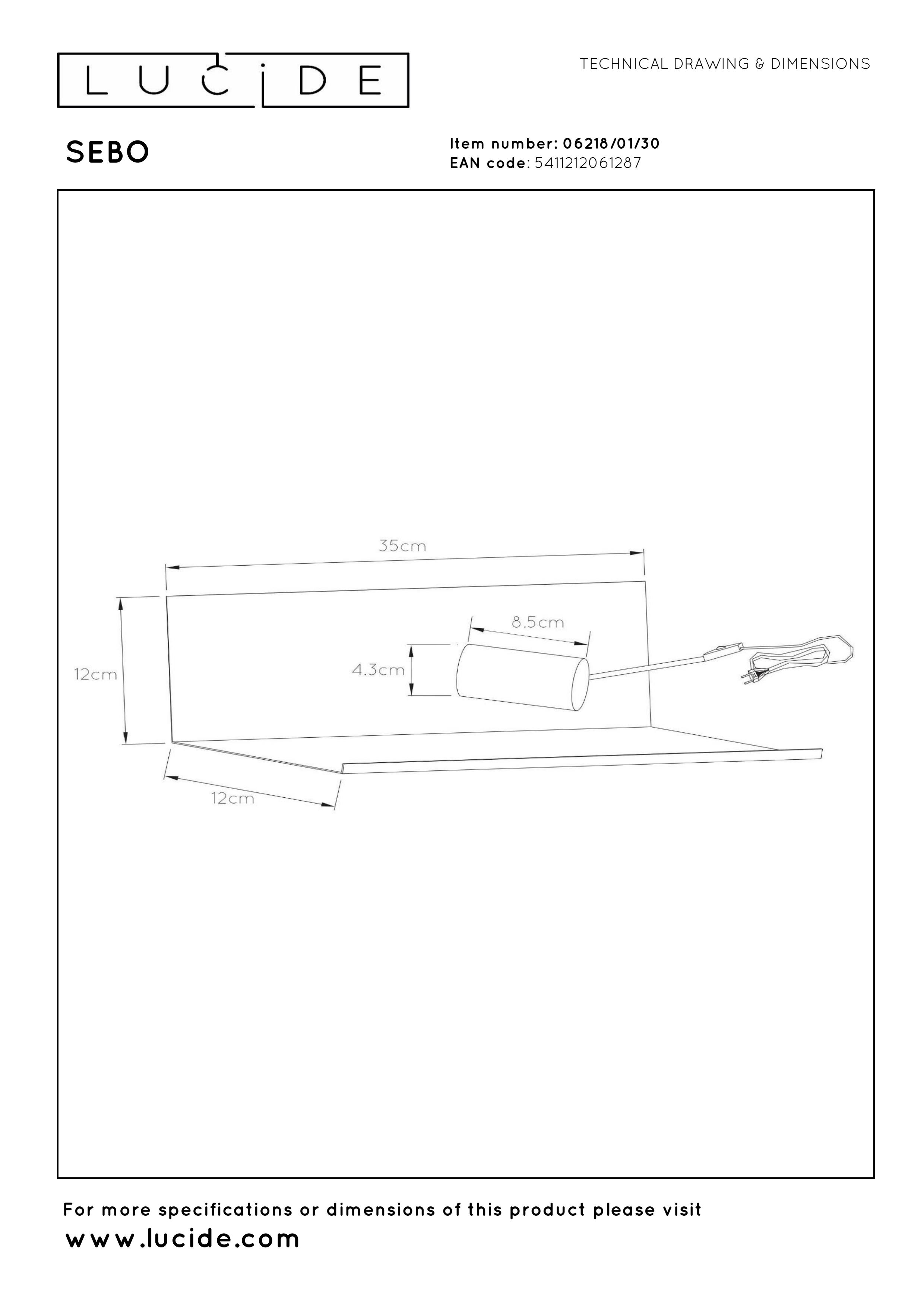 Lucide SEBO - Lampe de chevet / Applique mural - 1xE27 - Noir